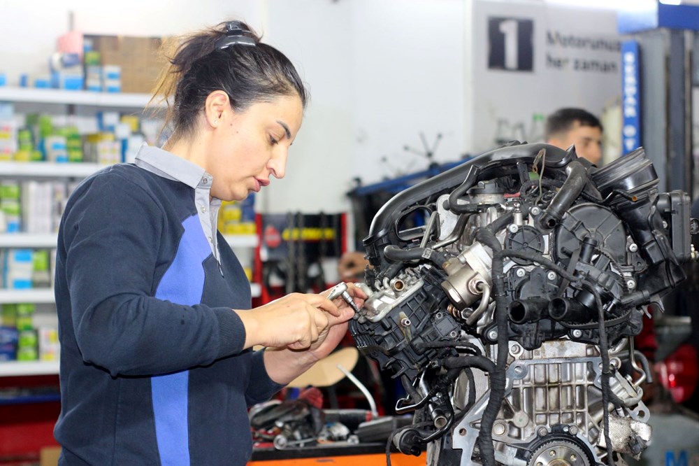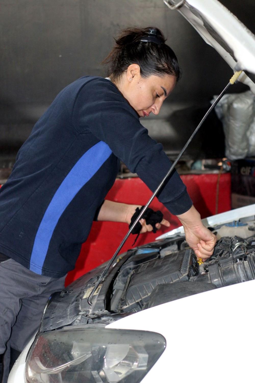 Evlatlarım işimi çok beğeniyor. Önceden yalnızca anneydim, artık anne usta oldum. Mektebe gittiğimde ‘Anne usta geldi’ söylüyorlar. Arkadaşlarına ve öğretmenlerine bizleri anlatıyorlar. ‘Annem yağ kaçağı onarıyor’ diyorlar. Ben de keyifleniyorum. Oğlumu okuldan çıktıktan sonra buraya getiriyorum. İşi öğretmek için aletleri veriyorum.
