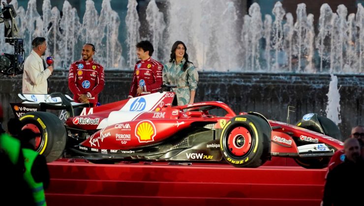 İtalyan motor sporları meraklıları, yaklaşan sezon öncesinde Charles Leclerc ve Lewis Hamilton’ı yakından görmek için Milano’daki Piazza Castello’da toplandı.