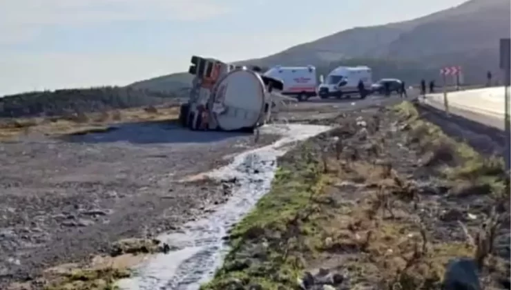 Kaza ile ilgili inceleme başlatılırken devrilen tankerden sızan akaryakıt ise yola yayıldı. – GAZİANTEP
