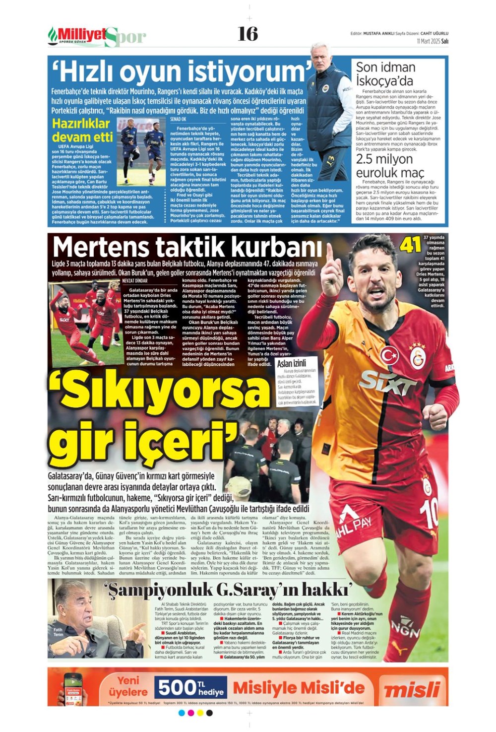 SPORFener’in Ateşi Yükseldi: Spor Dünyası Sarsıldı! Son güncelleme: Mart 30, 2025 7:52 am Yayımlandı: Mart 11, 2025 Paylaş 0 Dakika Okuma Paylaş CANLI: Jose Mourinho Rangers Karşılaşması Öncesinde Açıklamalarda Bulunuyor! Türk futbolunda olay: Maçın hakemine bıçaklı saldırı! Kenan Yıldız, Serie A’da ayın futbolcusu seçildi Fenerbahçe, Arda Turan’lı Eyüpspor’u konuk ediyor: Olası 11 Samsunspor 2’de 2 yaptı Bu Makaleyi Paylaş Facebook Bağlantıyı Kopyala Yazdır Paylaş Önceki Makale Tazelikten Lezzete: Hurma Seçiminde Püf Noktalar Sonraki Makale Gaziantep’te Sahte Saat İmparatorluğuna 3 Milyonluk Darbe Yorum yapılmamış Yorum yapılmamış Bir yanıt yazın Yanıtı iptal etE-posta adresiniz yayınlanmayacak. Gerekli alanlar * ile işaretlenmişlerdirYorum *Ad * E-posta * İnternet sitesi Daha sonraki yorumlarımda kullanılması için adım, e-posta adresim ve site adresim bu tarayıcıya kaydedilsin. Takip EdinXTakip EtInstagramTakip EtTelegramTakip Et - Reklam -Son Haberler İzmir’deki taksici Oğuz Erge cinayetinde karar onandı GÜNDEM Aralık 8, 2025 İstanbul Erkek Lisesi’nden neler oluyor? GÜNDEM Aralık 8, 2025 Erkek cinsiyetini belirleyen Y kromozomu yok oluyor GÜNDEM Aralık 8, 2025 Adliyede 6,5 milyonluk vurgun! Kriptoya yatırıp, bahis oynamış GÜNDEM Aralık 8, 2025