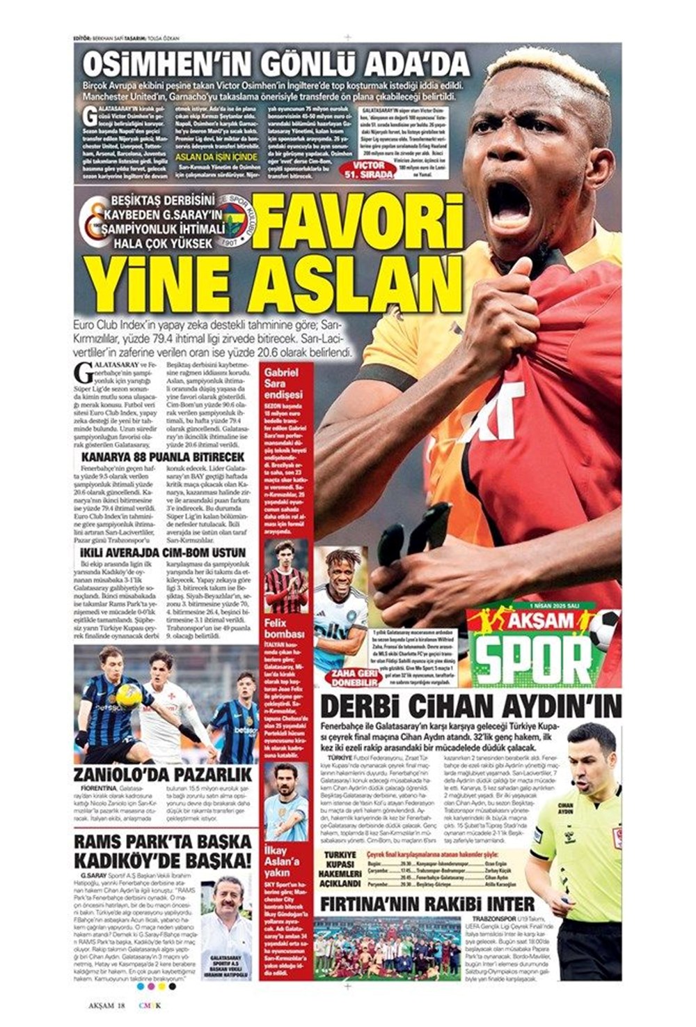 SPORFener Baharı: Rekorlar ve Yeni Transfer Müjdesi! Son güncelleme: Nisan 1, 2025 10:23 am Yayımlandı: Nisan 1, 2025 Paylaş 0 Dakika Okuma Paylaş Ulusal tenisçi Zeynep Sönmez ilki başardı Göztepe, geçen dönemin 1 puan önünde Osimhen, Galatasaray’da 24 yıldır kırılamayan rekorun peşinde Manisa FK’nın Serisi Son Buldu Montella: Duygusal olarak uzun mühlet etkileniyorum Bu Makaleyi Paylaş Facebook Bağlantıyı Kopyala Yazdır Paylaş Önceki Makale Marmara Buz Kesiyor: Termometreler Alarm Veriyor! Sonraki Makale Google Haritalar’da Keşfedilen Giza Piramitleri Yakınındaki Esrarengiz Anomali Yorum yapılmamış Yorum yapılmamış Bir yanıt yazın Yanıtı iptal etE-posta adresiniz yayınlanmayacak. Gerekli alanlar * ile işaretlenmişlerdirYorum *Ad * E-posta * İnternet sitesi Daha sonraki yorumlarımda kullanılması için adım, e-posta adresim ve site adresim bu tarayıcıya kaydedilsin. Takip EdinXTakip EtInstagramTakip EtTelegramTakip Et - Reklam -Son Haberler Yapay zeka RAM fiyatlarını uçurdu. Telefon, bilgisayar ve öteki aygıtlar nasıl etkilenecek? TEKNOLOJİ Aralık 5, 2025 “Başkan Trump Gazze İstikrar Gücü’nde Türkiye’yi de görmek istiyor” GÜNDEM Aralık 5, 2025 Canlı Anlatım: Galatasaray-Samsunspor maçı SPOR Aralık 5, 2025 Türkiye’deki bahis operasyonu, dünyanın gündeminde! “Baskın ve tutuklama” SPOR Aralık 5, 2025