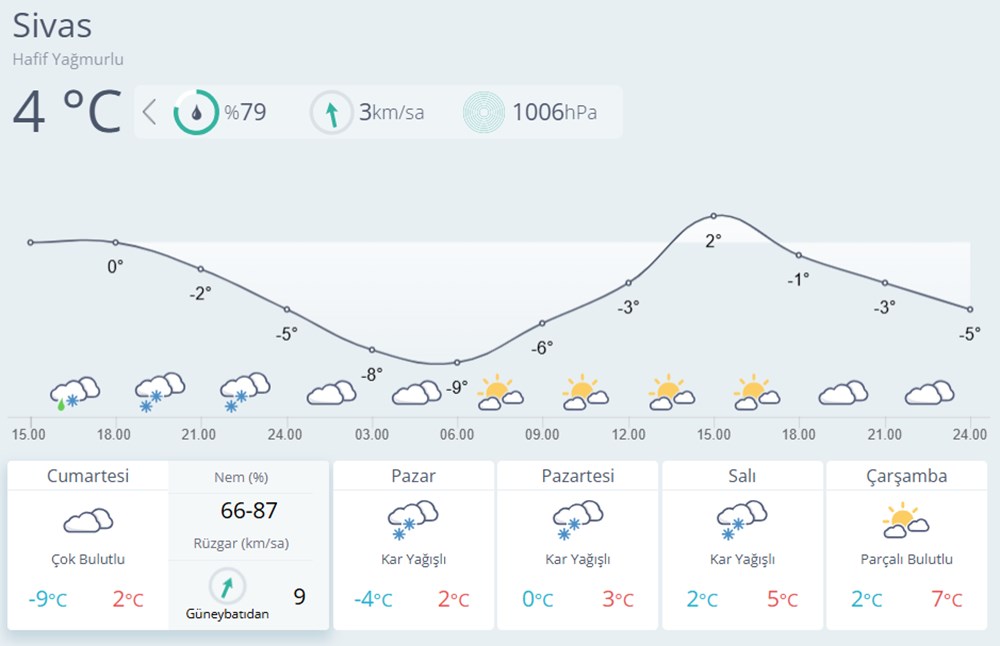 Sivas’ta meteoroloji datalarına nazaran kar yağışının yarın ve maçın oynanacağı pazar günü de aralıklarla devam etmesi bekleniyor.