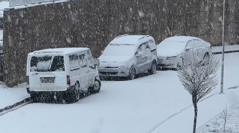 Özellikle park halindeki araçların kar altında kalması gözlerden kaçmadı.