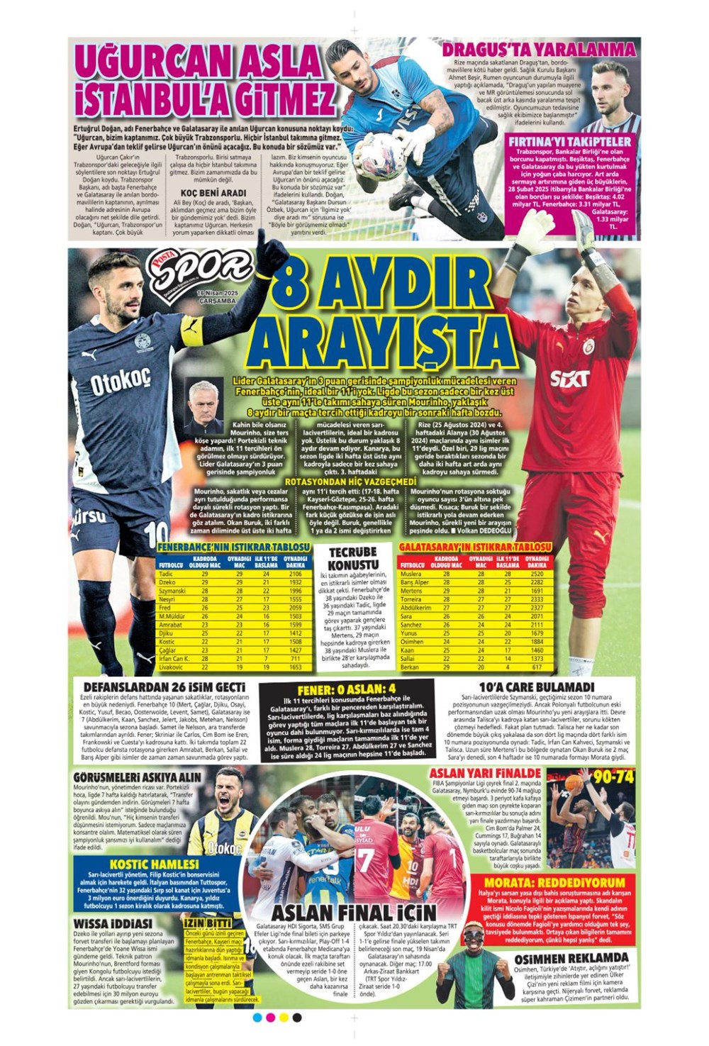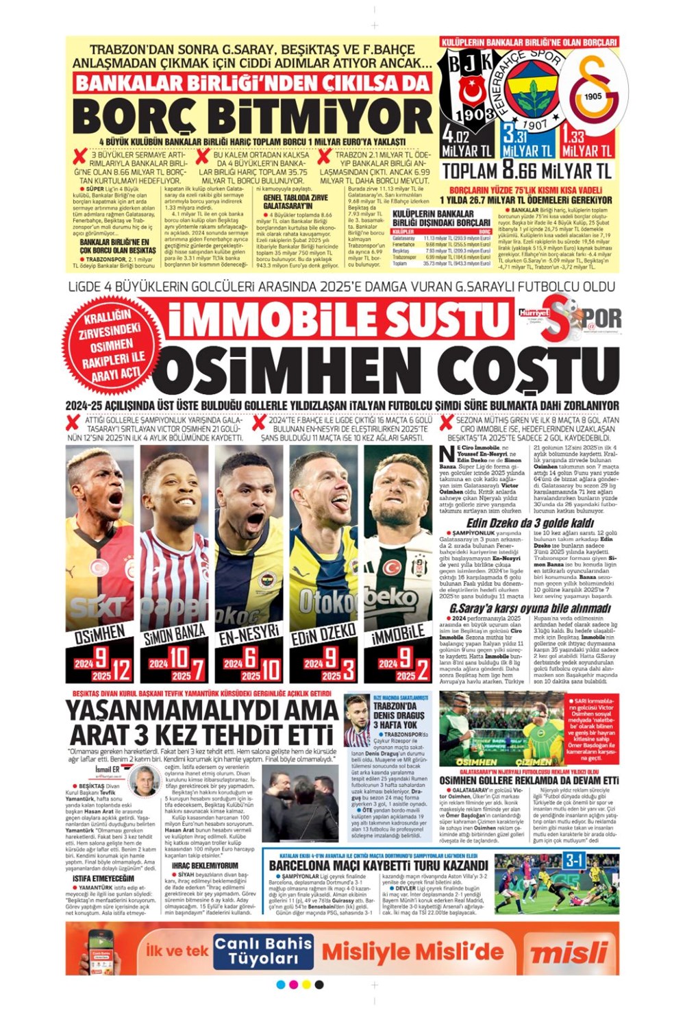 SPOR“Kim Min-Jae harekatı” (16 Nisan 2025 spor manşetleri) Son güncelleme: Nisan 16, 2025 8:15 am Yayımlandı: Nisan 16, 2025 Paylaş 0 Dakika Okuma Paylaş Almanya’dan Türkiye’ye: Gurbetçi Futbolcuların Milli Takım Seçiminde Kritik Dönemeç Galatasaray kadroyu açıkladı: Osimhen ve 6 yıldız isim yok! Türk futbolunda yeni devir: İmgeler 5 yıl saklanacak Fenerbahçe başkanlık seçimi için geri sayım: Aziz Yıldırım’dan genel şura kararı Fenerbahçe’nin Rakibi Rangers’tan Tarihi Adet: Ibrox’ta 126 Yıllık Kraliçe II. Elizabeth Yemini Bu Makaleyi Paylaş Facebook Bağlantıyı Kopyala Yazdır Paylaş Önceki Makale Araba şarampole devrildi: 1 meyyit, 3 yaralı Sonraki Makale Başkan’ın ameliyatı sona erdi. Müşahede altında tutuluyor Yorum yapılmamış Yorum yapılmamış Bir yanıt yazın Yanıtı iptal etE-posta adresiniz yayınlanmayacak. Gerekli alanlar * ile işaretlenmişlerdirYorum *Ad * E-posta * İnternet sitesi Daha sonraki yorumlarımda kullanılması için adım, e-posta adresim ve site adresim bu tarayıcıya kaydedilsin. Takip EdinXTakip EtInstagramTakip EtTelegramTakip Et - Reklam -Son Haberler 20 yaşındaki Usame’nin kuşkulu vefatı. Cinayet mi, intihar mı? GÜNDEM Aralık 6, 2025 Büyükçekmece’de kuyumcu vurgunu tezi. Altınlarla ortadan kayboldu GÜNDEM Aralık 6, 2025 Ticaret Bakanlığı açıkladı, sınırda geçişler durdu: TIR’lara grev manisi GÜNDEM Aralık 6, 2025 Pazardan aldığı mantarı yedi, iki gün sonra bulundu. Mantar nasıl zehirler? GÜNDEM Aralık 6, 2025