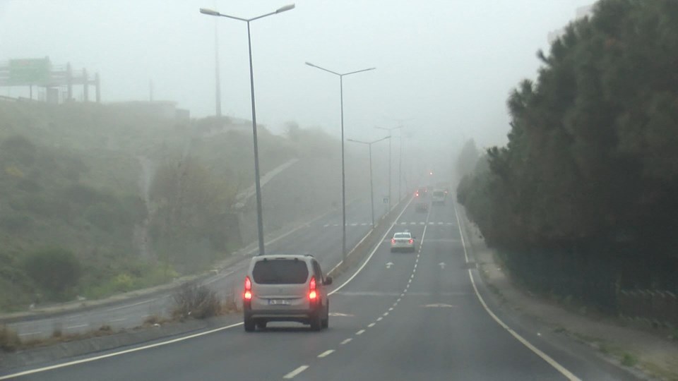 Sürücüler azalan görüş uzaklığı nedeniyle trafikte denetimli ilerliyor.