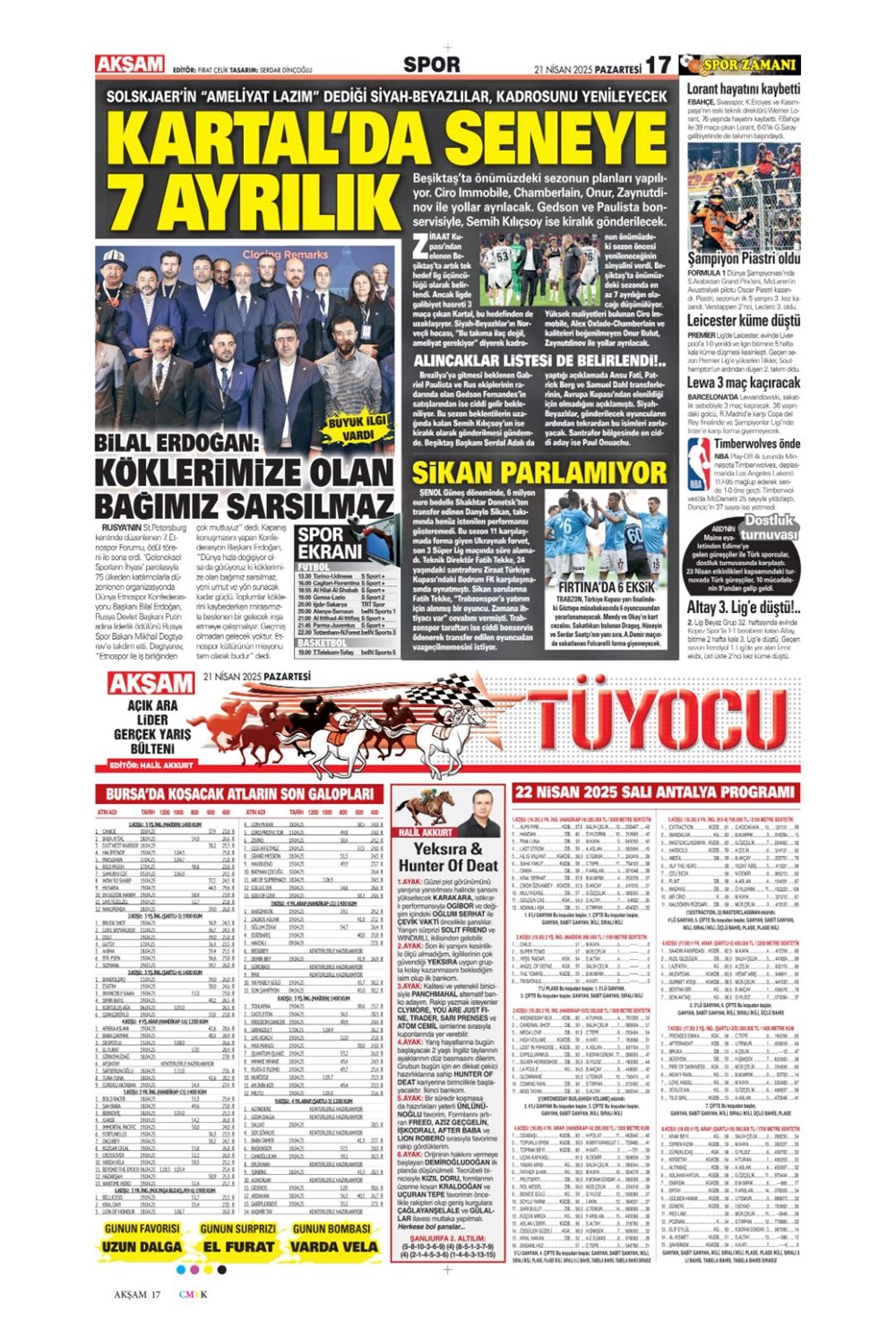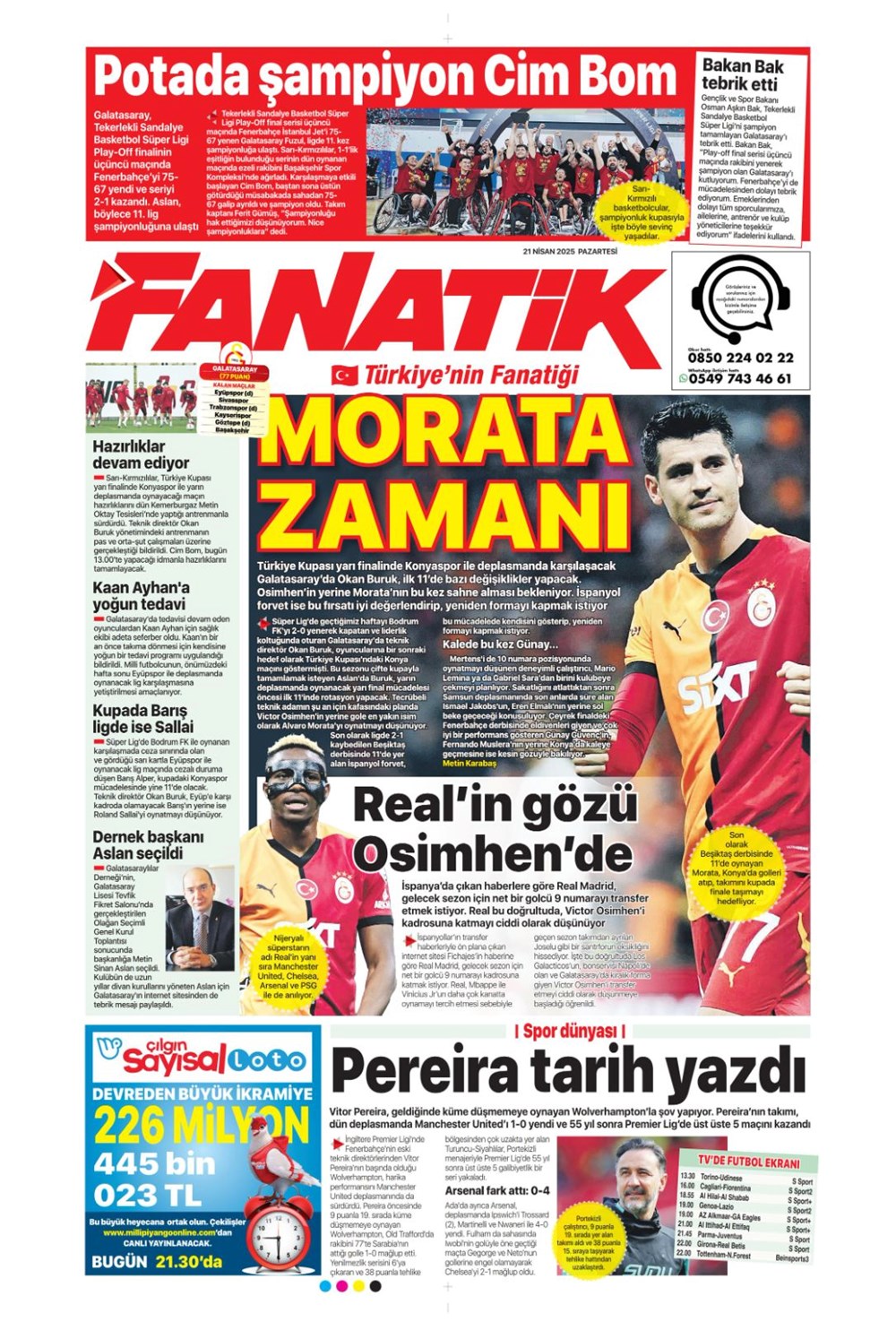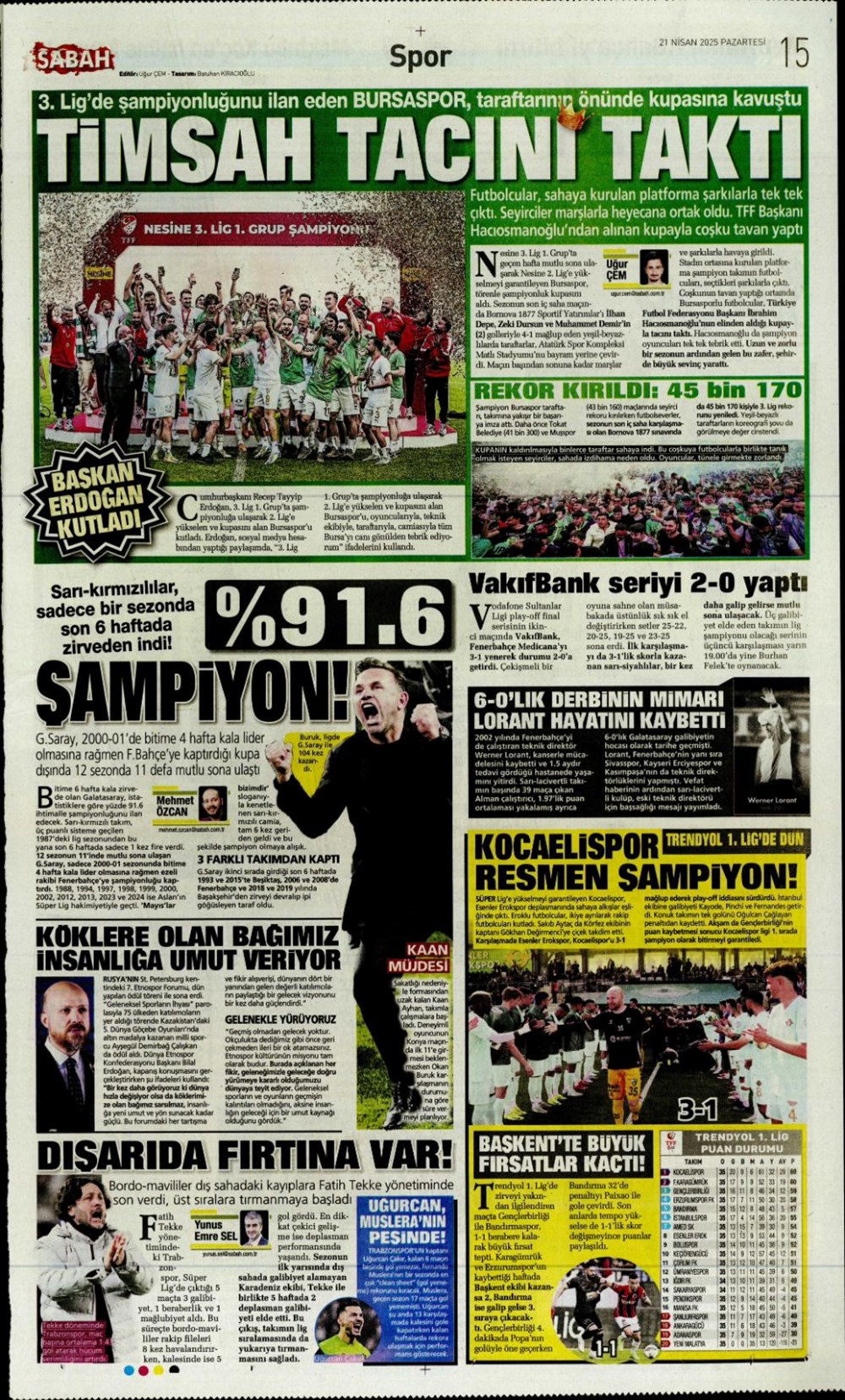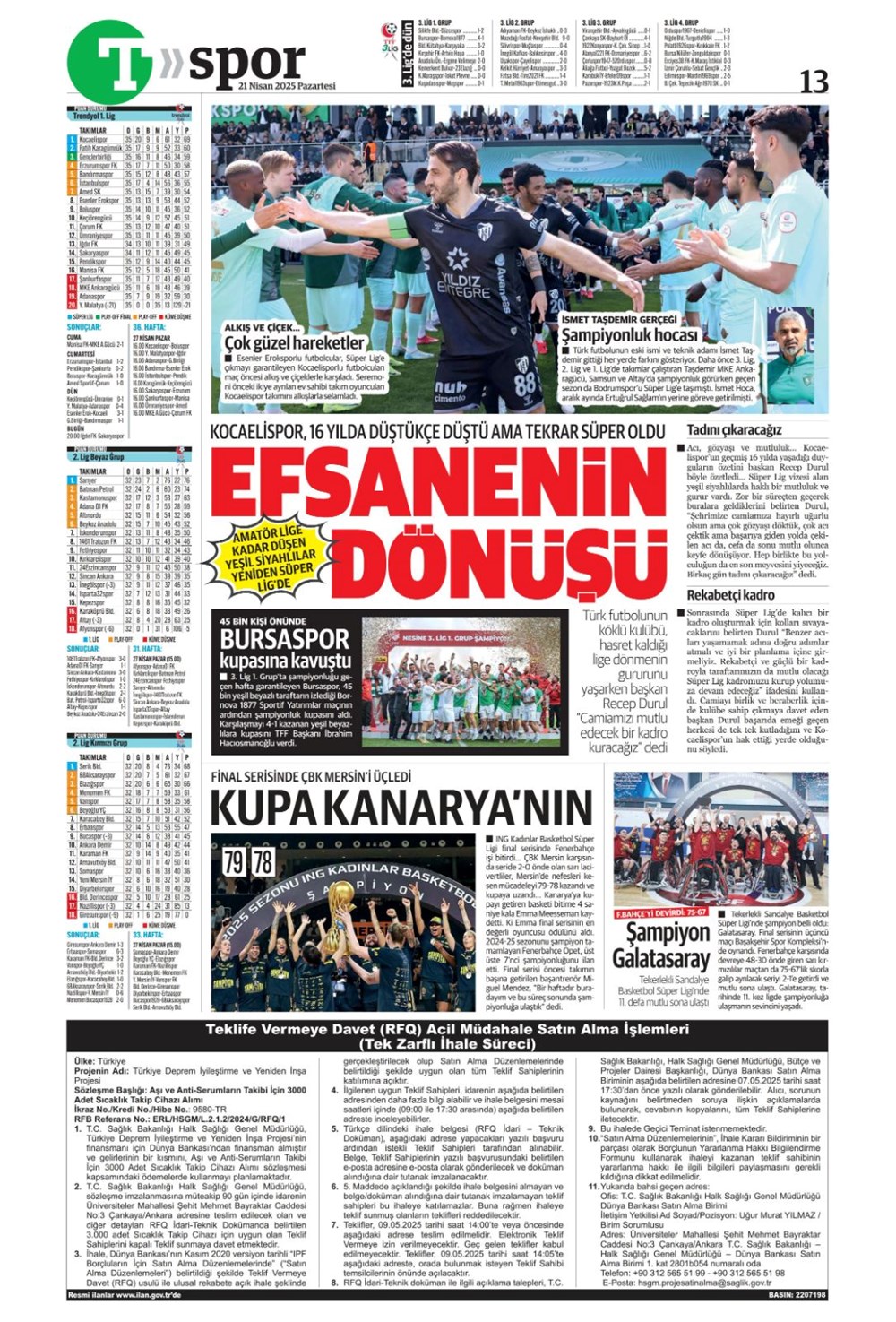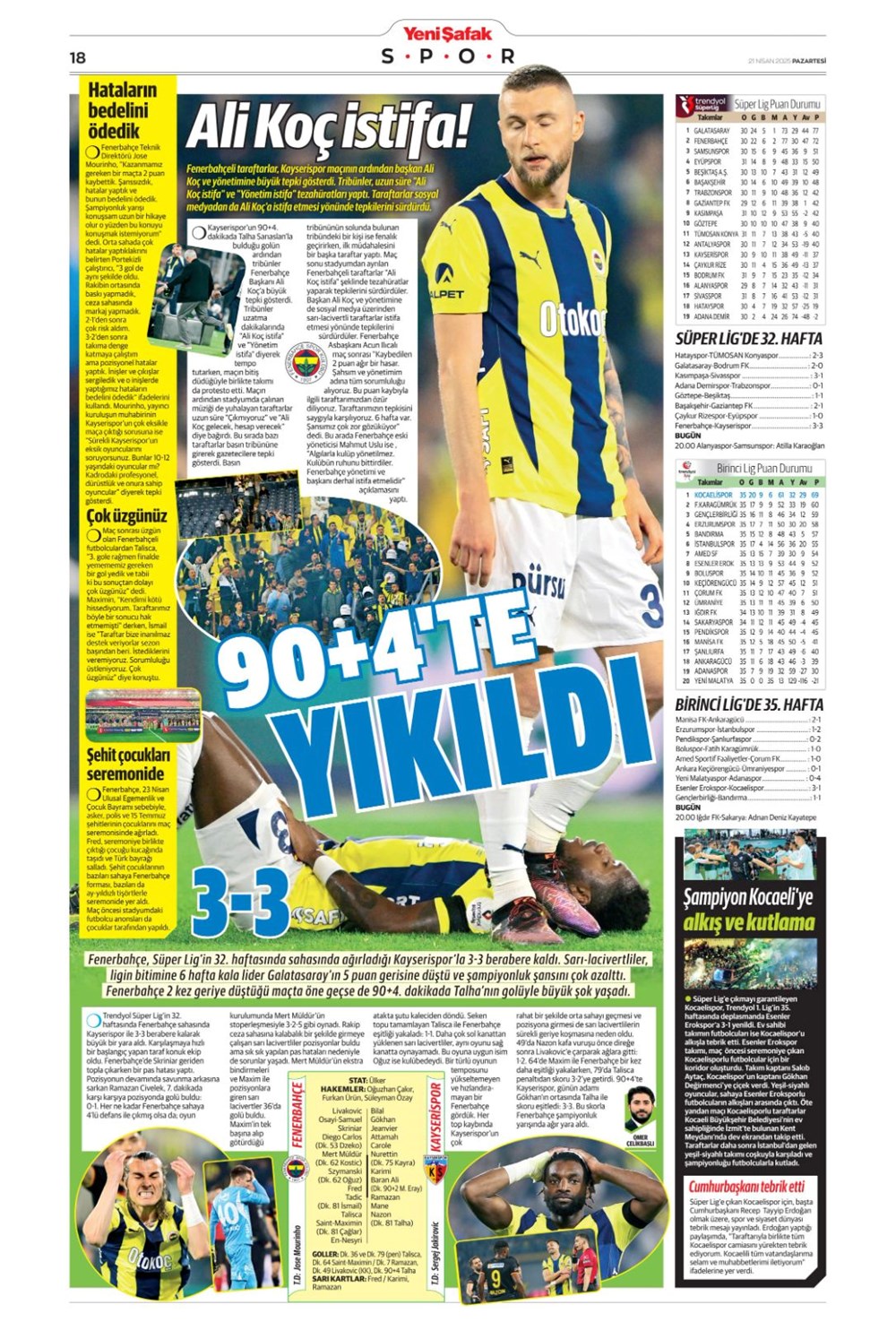 SPOR“Kadıköy’de hüsran ve isyan” (21 Nisan 2025 spor manşetleri) Son güncelleme: Nisan 21, 2025 11:11 pm Yayımlandı: Nisan 21, 2025 Paylaş 0 Dakika Okuma Paylaş West Ham United – Chelsea maçı ne vakit, saat kaçta ve hangi kanalda? Fenerbahçe Beko-Kızılyıldız basketbol maçı ne vakit, saat kaçta ve hangi kanalda? Galatasaray’ın kalan maçları hangileri? İşte GS’nin maç fikstürü Karagümrük transferi açıkladı: Matias Kranevitter Galatasaray’ın kalan maçları: 4 galibiyet 1 beraberlik yetiyor! Bu Makaleyi Paylaş Facebook Bağlantıyı Kopyala Yazdır Paylaş Önceki Makale Fenerbahçe camiası ayaklandı! Olağanüstü kongre çağrısı Sonraki Makale İstanbul Havalimanı tarihi bir adım atıyor Yorum yapılmamış Yorum yapılmamış Bir yanıt yazın Yanıtı iptal etE-posta adresiniz yayınlanmayacak. Gerekli alanlar * ile işaretlenmişlerdirYorum *Ad * E-posta * İnternet sitesi Daha sonraki yorumlarımda kullanılması için adım, e-posta adresim ve site adresim bu tarayıcıya kaydedilsin. Takip EdinXTakip EtInstagramTakip EtTelegramTakip Et - Reklam -Son Haberler Son dakika Antalya’da zelzele mi oldu? Az evvel sarsıntı Antalya’da nerede oldu? Antalya sarsıntı Kandilli ve AFAD son zelzeleler listesi 08 Aralık 2025 GÜNDEM Aralık 8, 2025 Otoyolda “drift buluşması”na polis baskını GÜNDEM Aralık 8, 2025 Seyir halindeki taksi, devrilen ağacın altında kaldı GÜNDEM Aralık 8, 2025 Hakkari’de heyelan. Dev kayalar yolu kapattı GÜNDEM Aralık 8, 2025