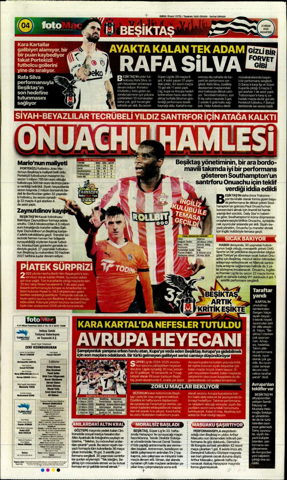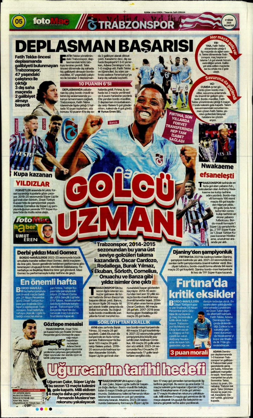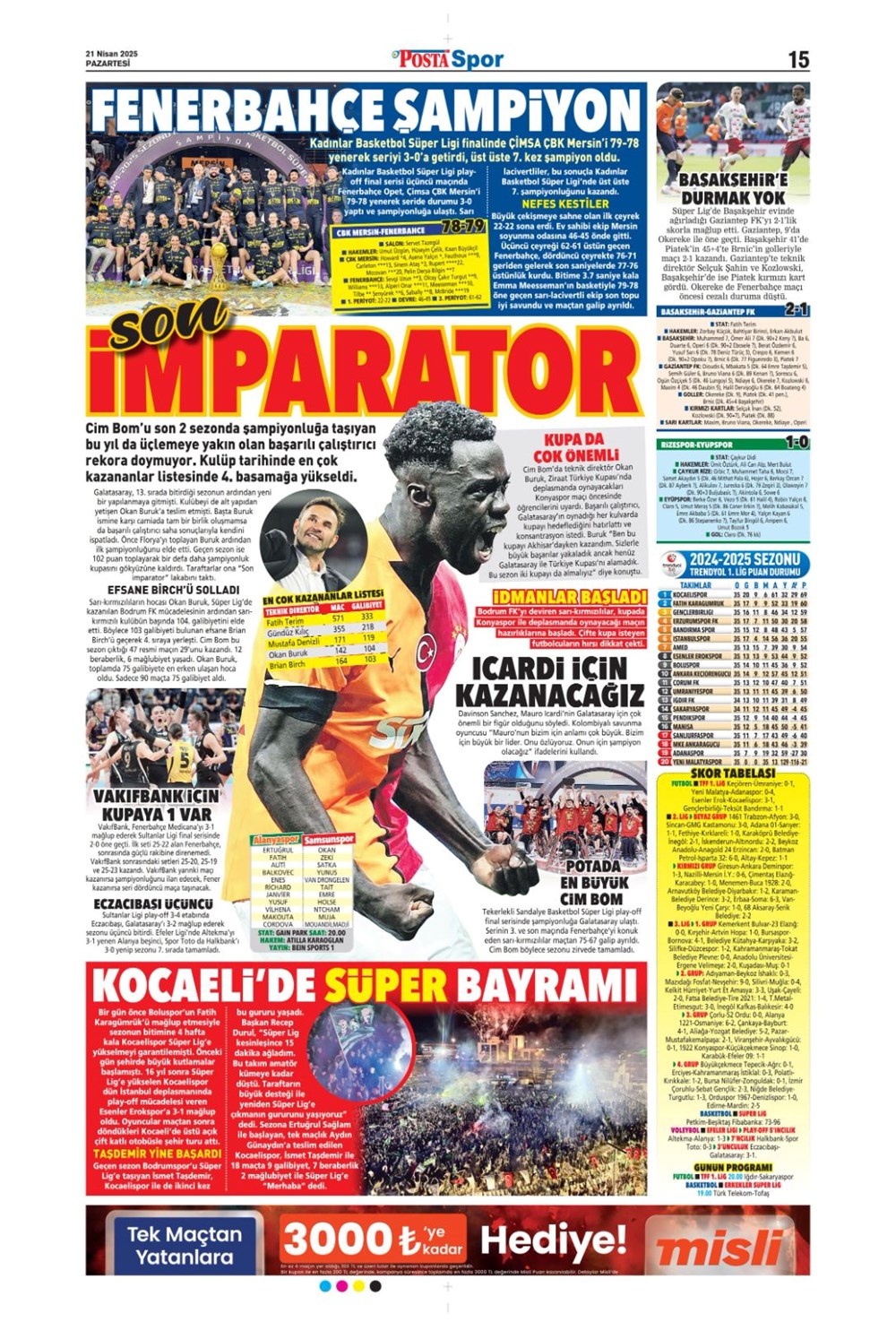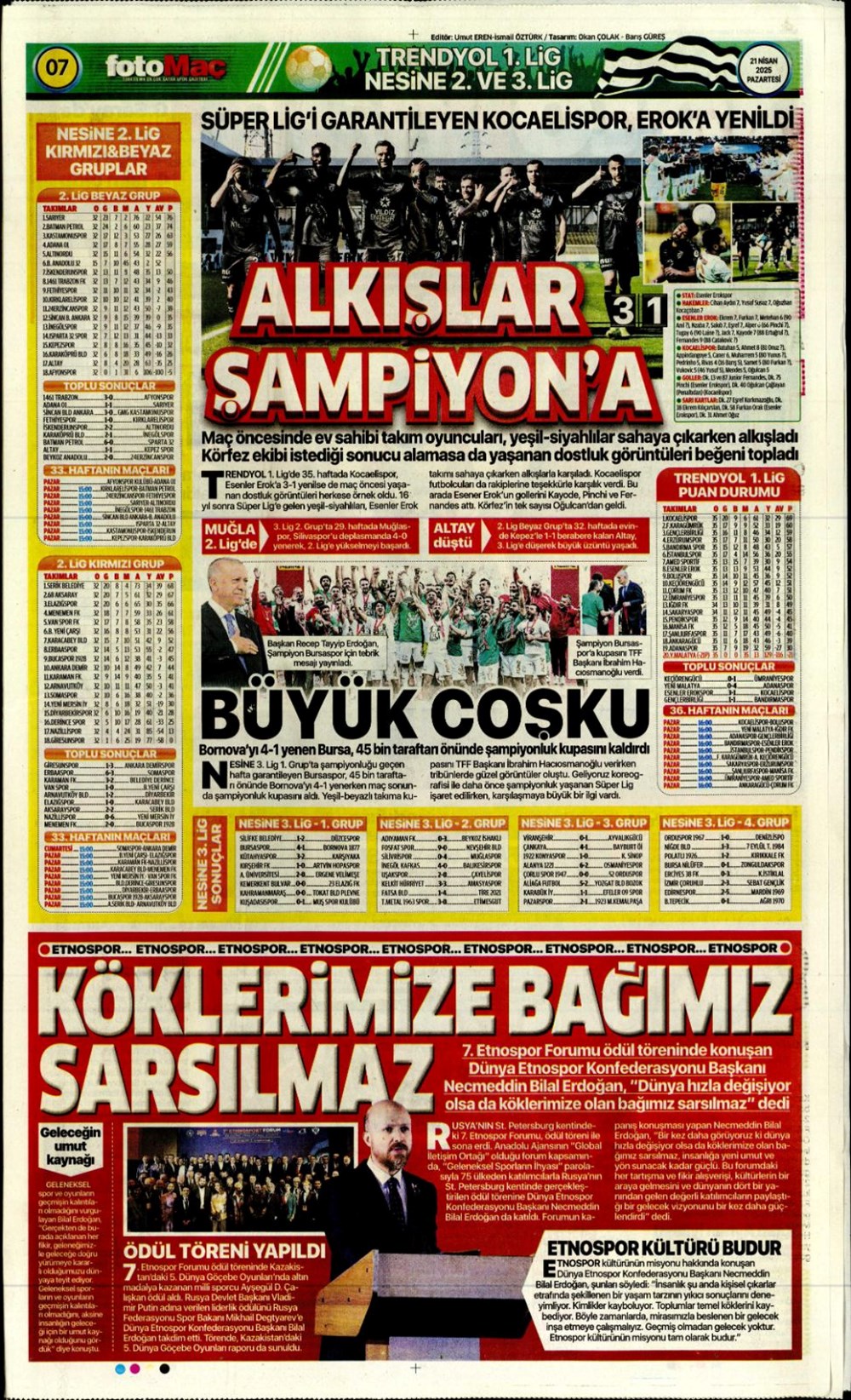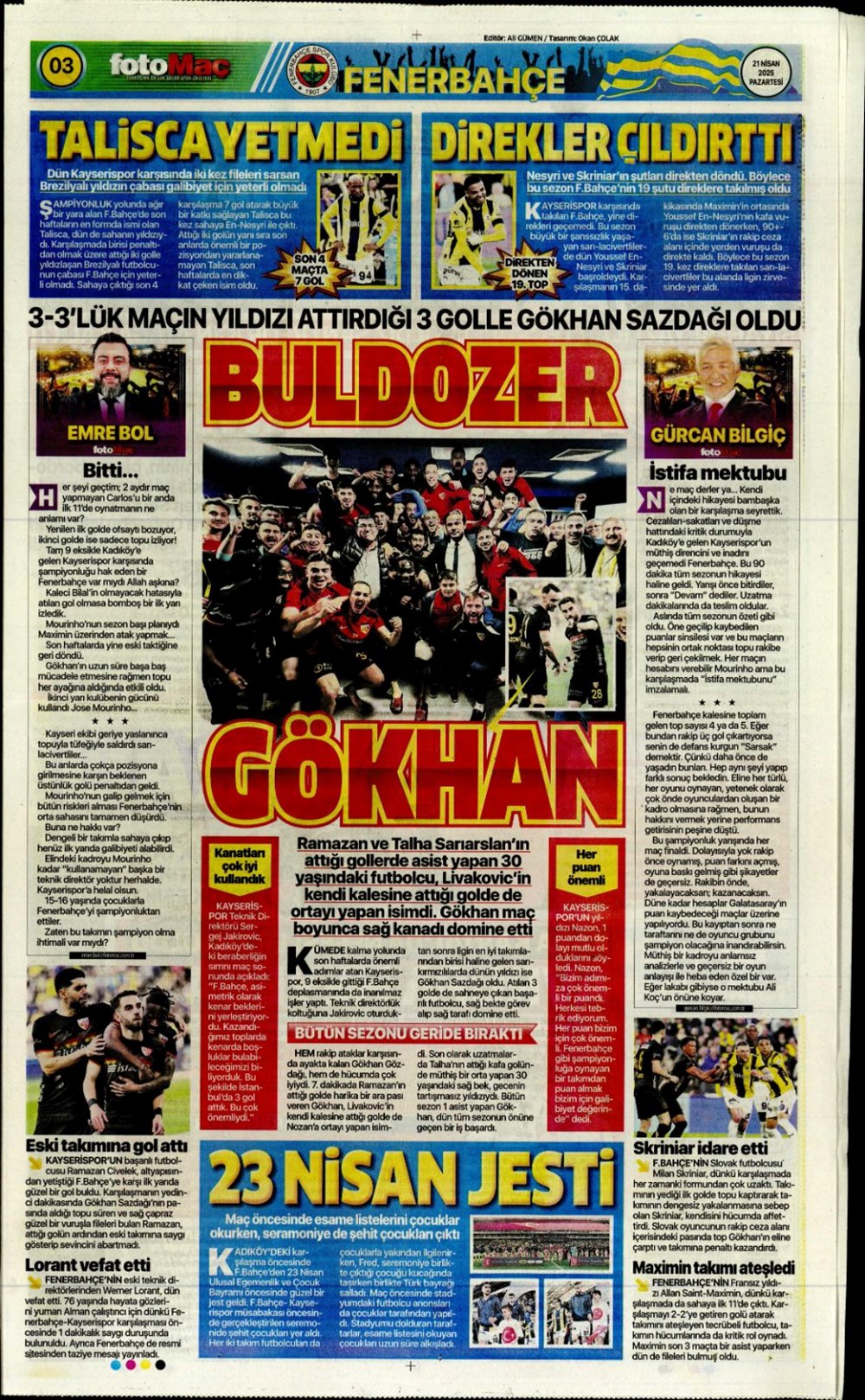 SPOR“Kadıköy’de hüsran ve isyan” (21 Nisan 2025 spor manşetleri) Son güncelleme: Nisan 21, 2025 11:11 pm Yayımlandı: Nisan 21, 2025 Paylaş 0 Dakika Okuma Paylaş West Ham United – Chelsea maçı ne vakit, saat kaçta ve hangi kanalda? Fenerbahçe Beko-Kızılyıldız basketbol maçı ne vakit, saat kaçta ve hangi kanalda? Galatasaray’ın kalan maçları hangileri? İşte GS’nin maç fikstürü Karagümrük transferi açıkladı: Matias Kranevitter Galatasaray’ın kalan maçları: 4 galibiyet 1 beraberlik yetiyor! Bu Makaleyi Paylaş Facebook Bağlantıyı Kopyala Yazdır Paylaş Önceki Makale Fenerbahçe camiası ayaklandı! Olağanüstü kongre çağrısı Sonraki Makale İstanbul Havalimanı tarihi bir adım atıyor Yorum yapılmamış Yorum yapılmamış Bir yanıt yazın Yanıtı iptal etE-posta adresiniz yayınlanmayacak. Gerekli alanlar * ile işaretlenmişlerdirYorum *Ad * E-posta * İnternet sitesi Daha sonraki yorumlarımda kullanılması için adım, e-posta adresim ve site adresim bu tarayıcıya kaydedilsin. Takip EdinXTakip EtInstagramTakip EtTelegramTakip Et - Reklam -Son Haberler Son dakika Antalya’da zelzele mi oldu? Az evvel sarsıntı Antalya’da nerede oldu? Antalya sarsıntı Kandilli ve AFAD son zelzeleler listesi 08 Aralık 2025 GÜNDEM Aralık 8, 2025 Otoyolda “drift buluşması”na polis baskını GÜNDEM Aralık 8, 2025 Seyir halindeki taksi, devrilen ağacın altında kaldı GÜNDEM Aralık 8, 2025 Hakkari’de heyelan. Dev kayalar yolu kapattı GÜNDEM Aralık 8, 2025