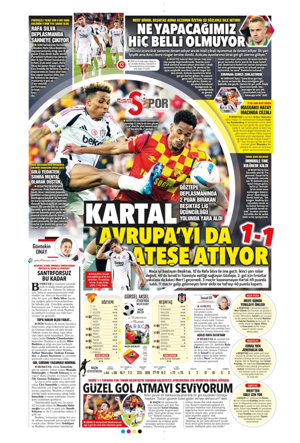 SPOR“Kartal’a İzmir’de soğuk duş” (20 Nisan 2025 spor manşetleri) Son güncelleme: Nisan 21, 2025 5:59 am Yayımlandı: Nisan 21, 2025 Paylaş 0 Dakika Okuma Paylaş Stuttgart, Almanya Kupası’nı müzesine götürdü Bu dönem yalnızca 92 dakika oynamıştı: Galatasaray’dan Bundesliga’ya transfer Montella, Kocaelispor-Rizespor maçını takip etti Sivasspor’un deplasman hasreti 191 güne çıktı Son dakika: Türkiye Kupası finalinin oynanacağı stadyum tekrar belirlenecek! Bu Makaleyi Paylaş Facebook Bağlantıyı Kopyala Yazdır Paylaş Önceki Makale Üstün Lig’e kaç grup çıkacak? Trendyol 1. Lig’den kaç ekip düşecek? Üstün Lig’e yükselen kadrolar Sonraki Makale Türkiye’de yaşayan Hristiyanlar Paskalya’yı kiliselerde kutladı Yorum yapılmamış Yorum yapılmamış Bir yanıt yazın Yanıtı iptal etE-posta adresiniz yayınlanmayacak. Gerekli alanlar * ile işaretlenmişlerdirYorum *Ad * E-posta * İnternet sitesi Daha sonraki yorumlarımda kullanılması için adım, e-posta adresim ve site adresim bu tarayıcıya kaydedilsin. Takip EdinXTakip EtInstagramTakip EtTelegramTakip Et - Reklam -Son Haberler Ferdi Zeyrek davasında 10 sanık hakim karşısında GÜNDEM Aralık 5, 2025 Altın fiyatları güne böyle başladı EKONOMİ Aralık 5, 2025 Düzmece banka reklamlarıyla dolandırıcılık. 18 kuşkulu yakalandı GÜNDEM Aralık 5, 2025 33 vilayetteki DAEŞ operasyonunda 51 tutuklama GÜNDEM Aralık 5, 2025