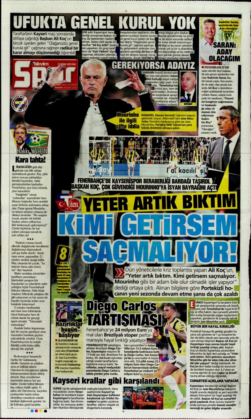 SPOR“Fatura Mourinho’ya” (22 Nisan 2025 spor manşetleri) Son güncelleme: Nisan 23, 2025 10:59 am Yayımlandı: Nisan 23, 2025 Paylaş 0 Dakika Okuma Paylaş Türkiye Macaristan Milli Maçı: Saatler Kala Heyecan Dorukta! Trabzonspor’un transfer listesindeki futbolcular ‘Ali Koç Cumhurbaşkanına gidince olay oluyor, niye…’ Cumhurbaşkanı Erdoğan, şampiyon güreşçileri kabul etti İtalya’da Scudetto: Üç Atlı’nın Yarışı Kızışıyor Bu Makaleyi Paylaş Facebook Bağlantıyı Kopyala Yazdır Paylaş Önceki Makale ‘Fenerbahçe’de çalışır mısın?’ sorusuna Volkan Demirel’den iddialı cevap Sonraki Makale Laureus mükafatları dağıtıldı: Spor dünyasında 2024’ün en güzelleri seçildi Yorum yapılmamış Yorum yapılmamış Bir yanıt yazın Yanıtı iptal etE-posta adresiniz yayınlanmayacak. Gerekli alanlar * ile işaretlenmişlerdirYorum *Ad * E-posta * İnternet sitesi Daha sonraki yorumlarımda kullanılması için adım, e-posta adresim ve site adresim bu tarayıcıya kaydedilsin. Takip EdinXTakip EtInstagramTakip EtTelegramTakip Et - Reklam -Son Haberler Ferdi Zeyrek davasında 10 sanık hakim karşısında GÜNDEM Aralık 5, 2025 Altın fiyatları güne böyle başladı EKONOMİ Aralık 5, 2025 Düzmece banka reklamlarıyla dolandırıcılık. 18 kuşkulu yakalandı GÜNDEM Aralık 5, 2025 33 vilayetteki DAEŞ operasyonunda 51 tutuklama GÜNDEM Aralık 5, 2025