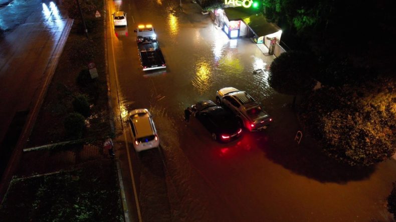 Altyapı yetersizliği bir sefer daha gün yüzüne çıkarken, ana arterlerde oluşan su birikintileri ulaşımı durma noktasına getirdi. Vatandaşlar yağışın tesiriyle mağdur olurken, polislerde ağır mesai harcadı.