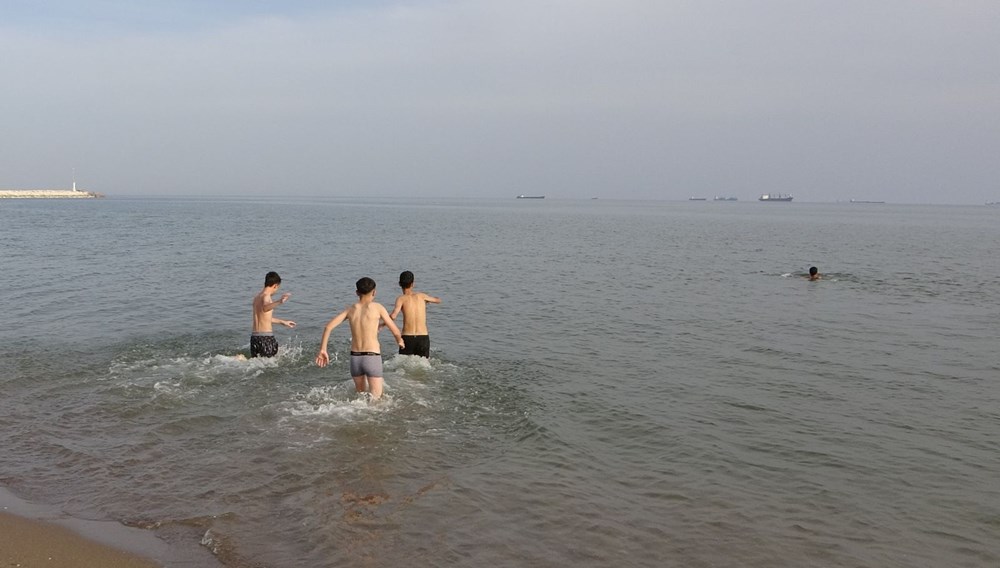 Havanın sıcak olması nedeniyle arkadaşlarıyla birlikte serinlemek için denize girdiklerini belirten Miraç Çetin, “Hava sıcak diye arkadaşlarla yüzmeye geldik. Bu ortalar zati aklımızda vardı yüzmek. Biz evvel çarşıya gezmeye çıktık, ondan sonra aklımıza yüzmek geldi. ‘Hava sıcakken atlayalım’ dedik. Su ılık, tam da denize girmelik bir hava zaten” diye konuştu. Sıcaktan bunalanlara denize girmeyi öneren Çetin, “Hava ısınmışken gelin, eğlenin, yüzün” dedi.