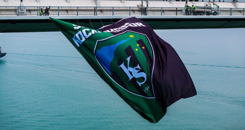 Taraftarın isteğini kırmayan Kocaeli Büyükşehir Belediye Başkanı Tahir Büyükakın, dev Kocaelispor bayrağını Ulaştırma Bakanlığı’ndan alınan müsaadelerin akabinde köprüye astırdı.