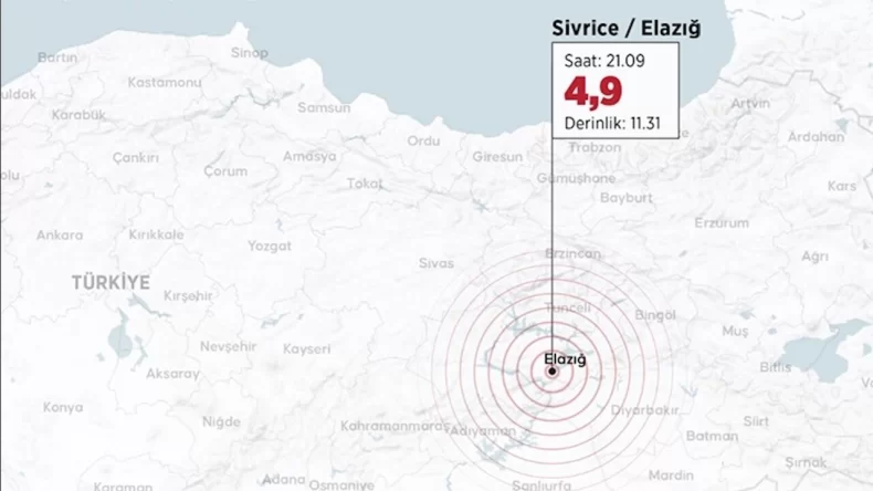 Elazığ’ın Sivrice ilçesinde saat 21.09’da 4,9 büyüklüğünde deprem meydana geldi.