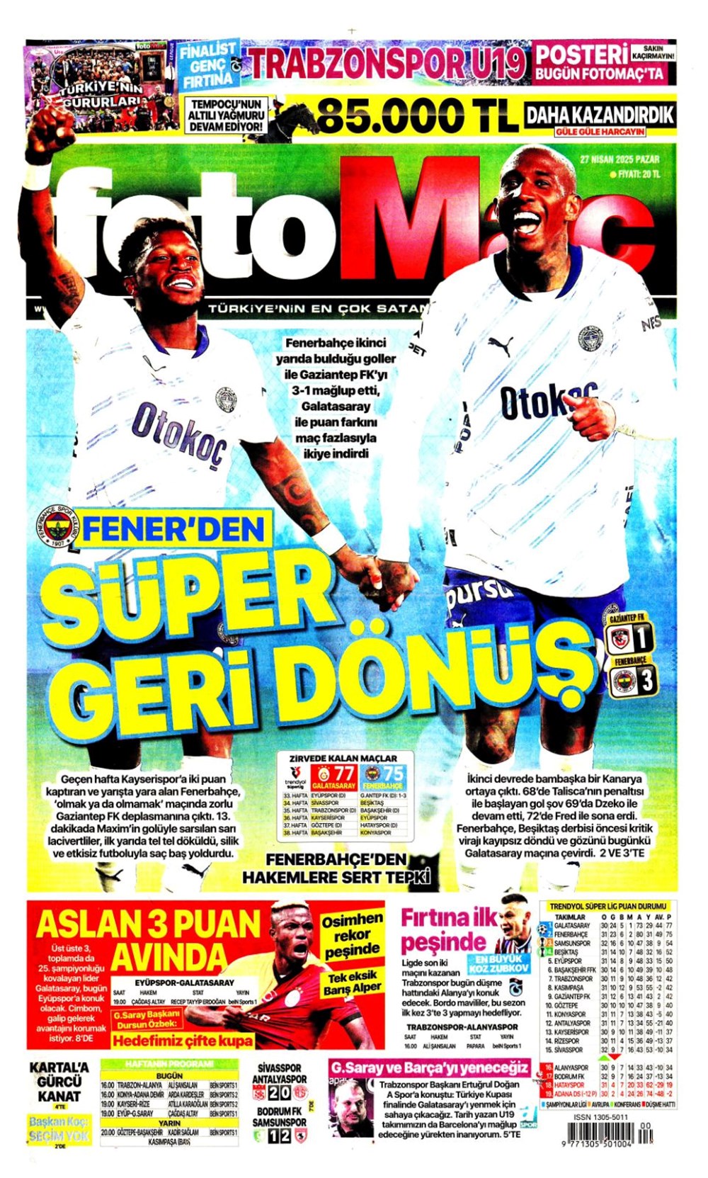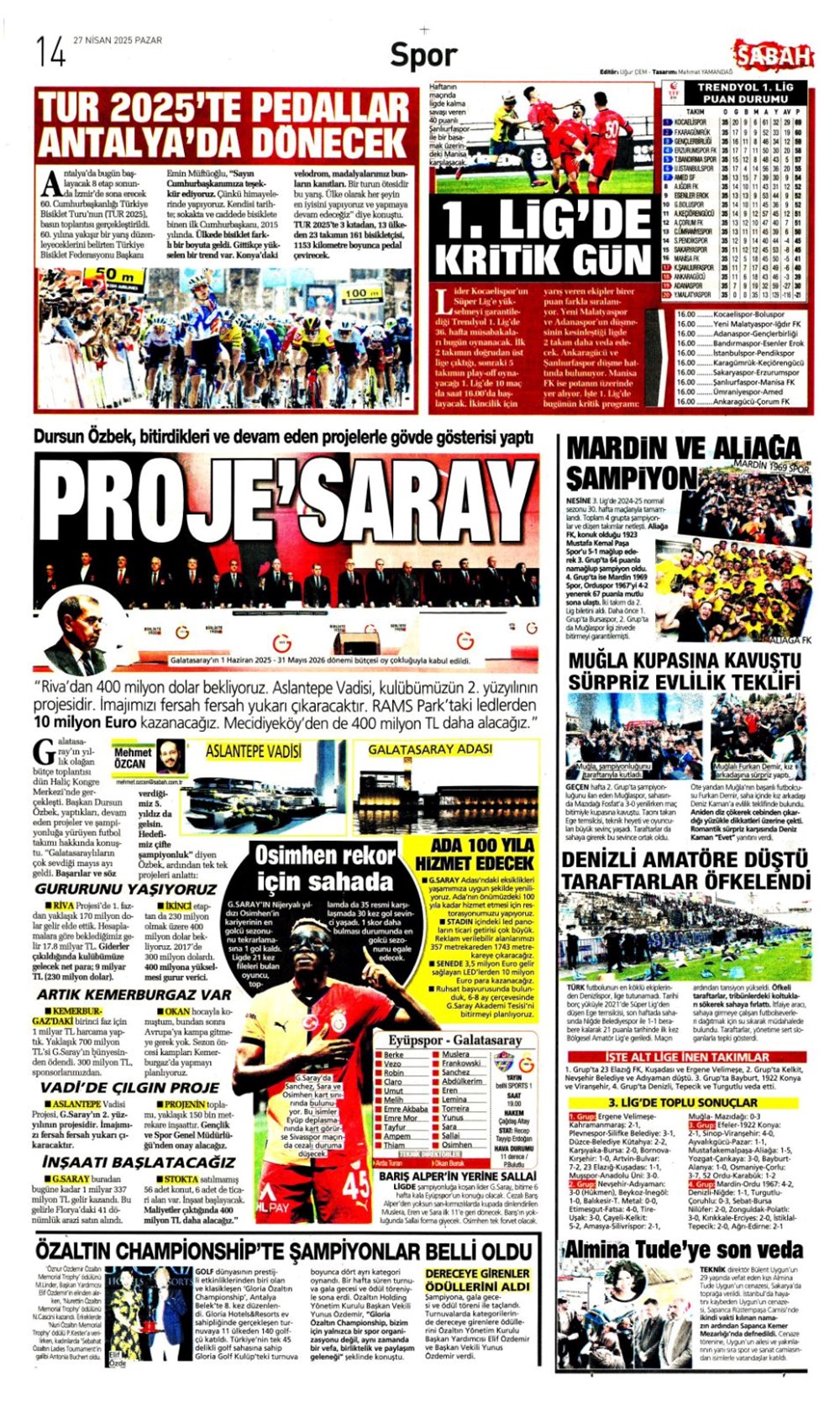 GÜNDEM“Beş dakikada geri dönüş” (27 Nisan 2025 spor manşetleri) Son güncelleme: Nisan 30, 2025 2:47 am Yayımlandı: Nisan 30, 2025 Paylaş 0 Dakika Okuma Paylaş Ömer Çelik: “Sayın Numan Kurtulmuş’a yönelik saygısızlığı kınıyoruz” Çanakkale’de boş bina kısmen çöktü 17 sistemsiz göçmen yakalandı Eski Yahşihan Belediye Başkanı Ahmet Sungur’un mal varlığına el konuldu Türk firmaları Suriye pazarında kalıcı adımlar atacak Bu Makaleyi Paylaş Facebook Bağlantıyı Kopyala Yazdır Paylaş Önceki Makale Melisa Aslı Pamuk ile Yusuf Yazıcı’nın 3 Aylık Olan Oğulları Mylan’dan Yeni Kare Geldi! Sonraki Makale FETÖ’nün güncel yapısı çökertildi! Yorum yapılmamış Yorum yapılmamış Bir yanıt yazın Yanıtı iptal etE-posta adresiniz yayınlanmayacak. Gerekli alanlar * ile işaretlenmişlerdirYorum *Ad * E-posta * İnternet sitesi Daha sonraki yorumlarımda kullanılması için adım, e-posta adresim ve site adresim bu tarayıcıya kaydedilsin. Takip EdinXTakip EtInstagramTakip EtTelegramTakip Et - Reklam -Son Haberler Üniversite saldırganı eski ABD askeri çıktı GÜNDEM Aralık 15, 2025 Bakan Tekin’den MESEM açıklaması. “23 bin işletmenin mukavelesi feshedildi” GÜNDEM Aralık 15, 2025 Yük treni arabaya çarptı, 5 kişi yaralandı GÜNDEM Aralık 15, 2025 Birikimlerini emanet ettikleri kuyumcunun önünde hareket yaptılar GÜNDEM Aralık 15, 2025