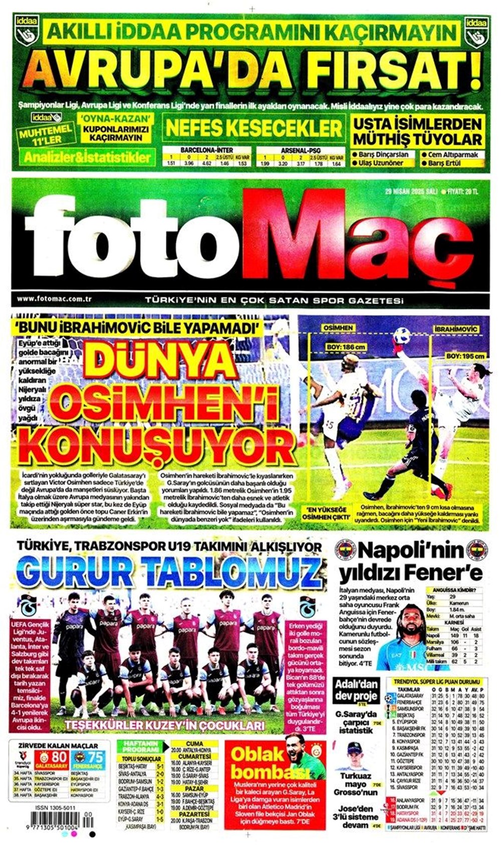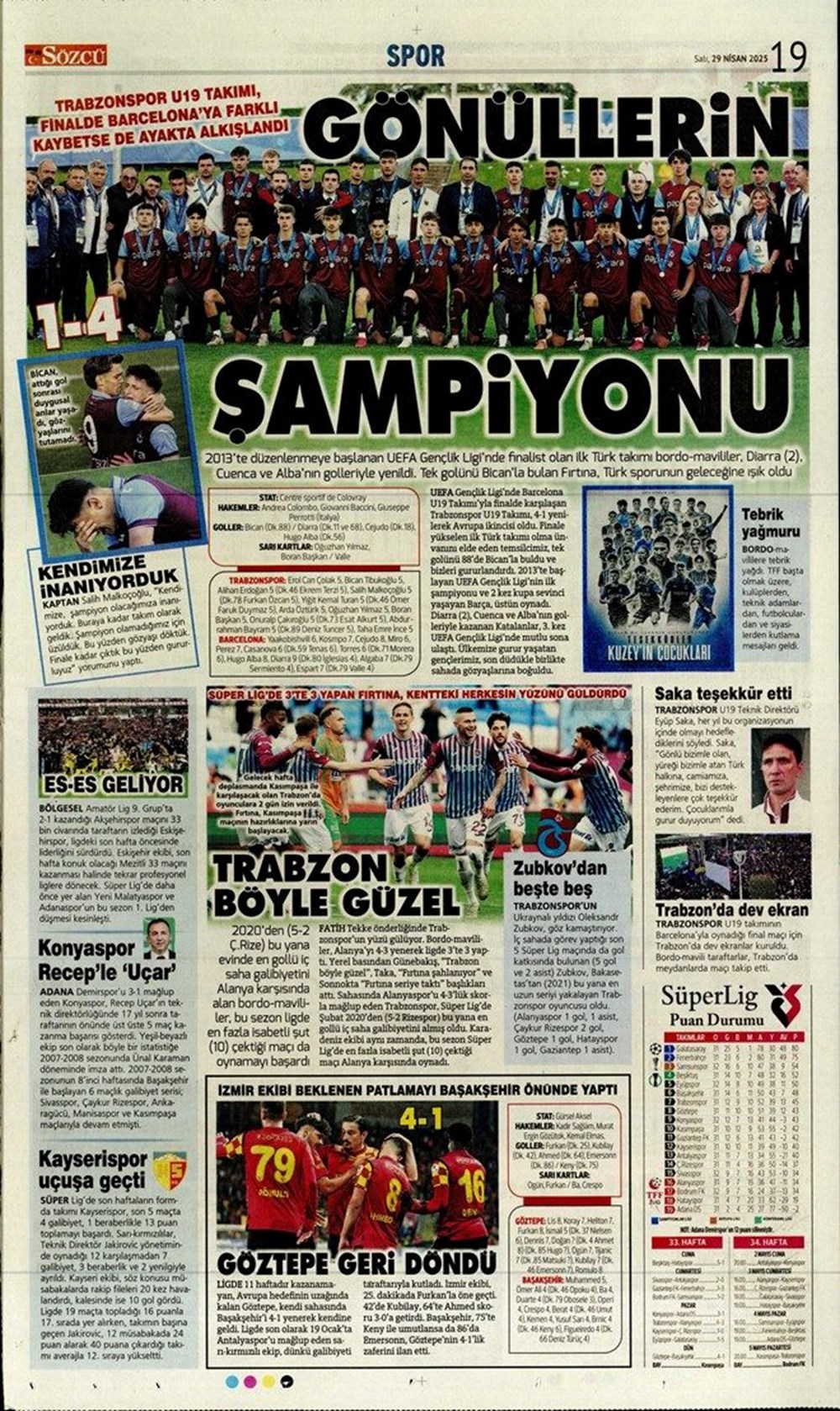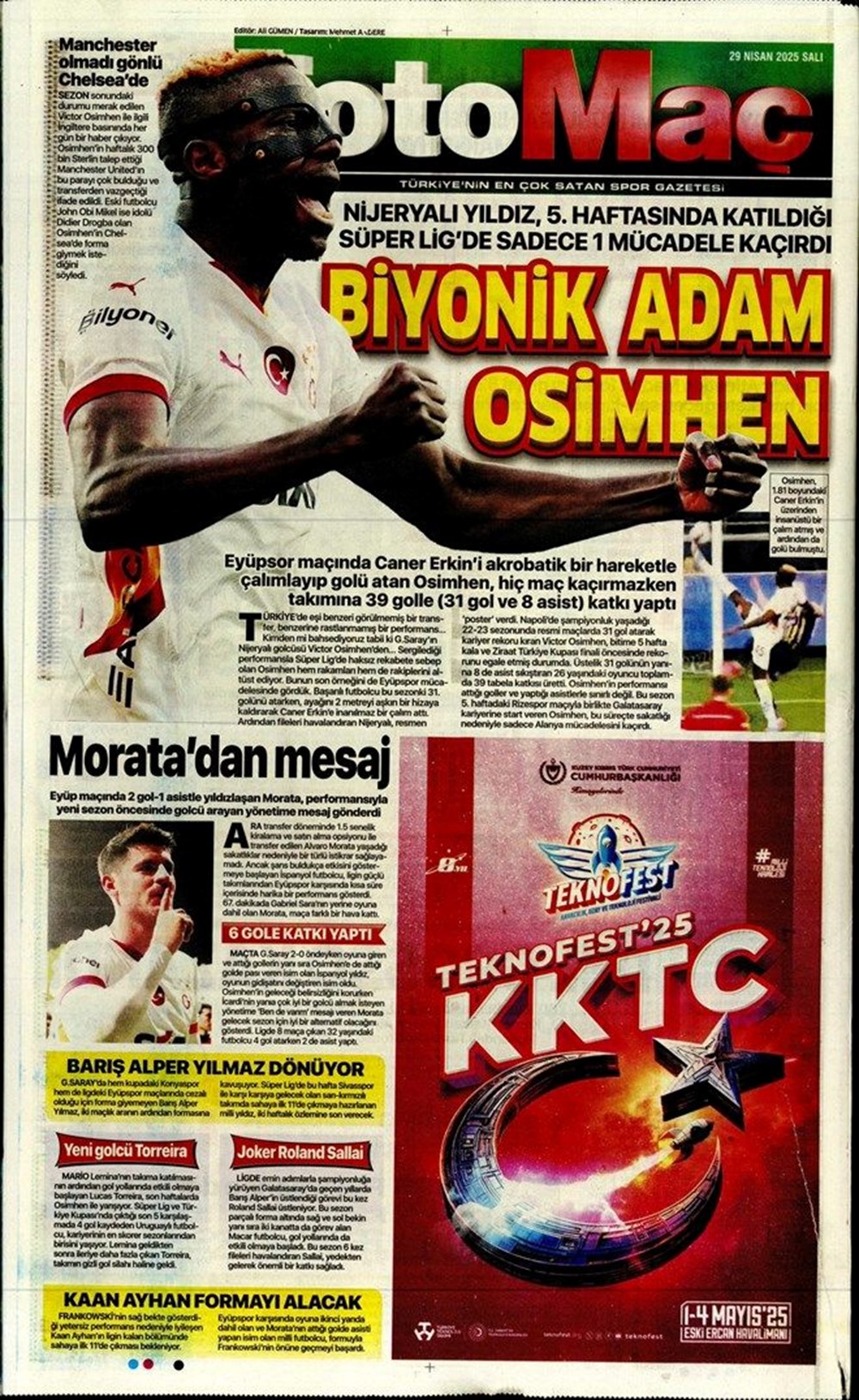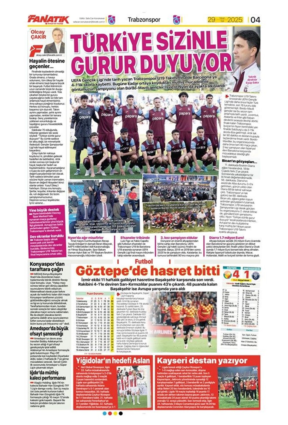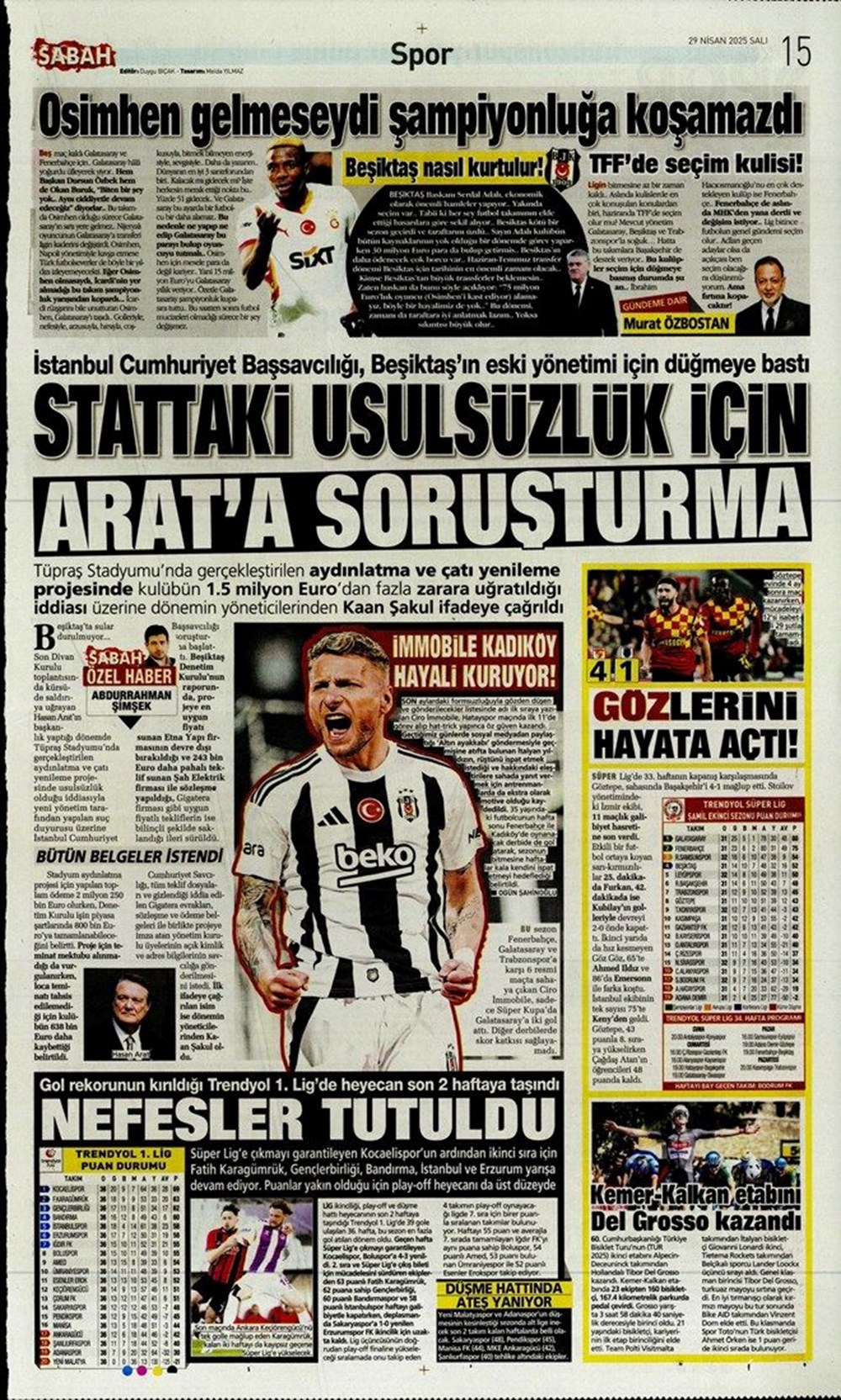 SPOR“Aslan’ın listesi göz kamaştırıcı” (29 Nisan 2025 spor manşetleri) Son güncelleme: Mayıs 1, 2025 8:59 pm Yayımlandı: Mayıs 1, 2025 Paylaş 0 Dakika Okuma Paylaş Göztepe – Beşiktaş maçının VAR hakemi aşikâr oldu Fenerbahçe’den TFF’ye Yusuf Akçiçek bildirisi: Karşılıklı olarak sona erdirildi Erciyes’te plaj voleybolu turnuvası başladı Trabzonspor’da teknik direktör krizi: 3 isimle de olmadı Josef Spurny, Eyüpspor-Başakşehir Maçının VAR Hakemi Bu Makaleyi Paylaş Facebook Bağlantıyı Kopyala Yazdır Paylaş Önceki Makale Otel faciasında ‘gri palet’ detayı! Yangının çıkış anı görüntüleri… Sonraki Makale Pınar Deniz ile Kaan Yıldırım’dan oğulları Fikret Hakan’la birinci paylaşım Yorum yapılmamış Yorum yapılmamış Bir yanıt yazın Yanıtı iptal etE-posta adresiniz yayınlanmayacak. Gerekli alanlar * ile işaretlenmişlerdirYorum *Ad * E-posta * İnternet sitesi Daha sonraki yorumlarımda kullanılması için adım, e-posta adresim ve site adresim bu tarayıcıya kaydedilsin. Takip EdinXTakip EtInstagramTakip EtTelegramTakip Et - Reklam -Son Haberler Akran zorbalığı 14 yaşındaki çocuğu, yatağa mahkum etti GÜNDEM Aralık 5, 2025 Türkiye’nin il olmaya aday ilçeleri GÜNDEM Aralık 5, 2025 “İmamoğlu çıkar hedefli kabahat örgütü” soruşturmasında tahliye kararı verilen 10 zanlı için tutuklama talebi GÜNDEM Aralık 5, 2025 Cumhurbaşkanı Erdoğan: Adil toplumsal hayat, bayanların kelam sahibi olmalarıyla mümkün GÜNDEM Aralık 5, 2025