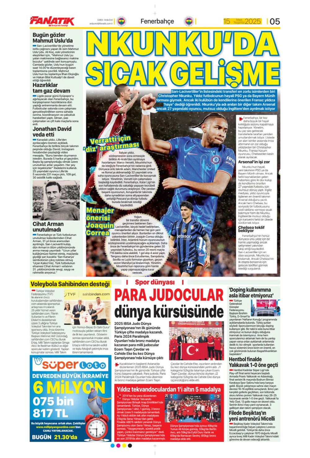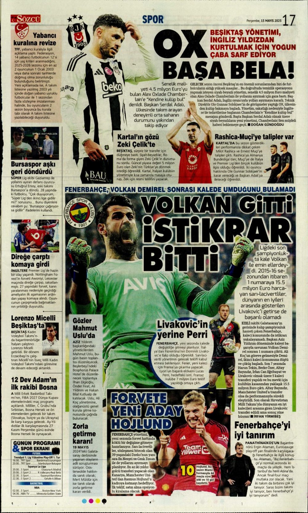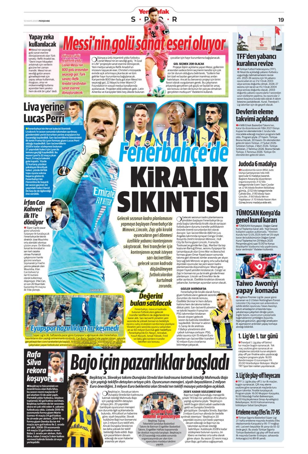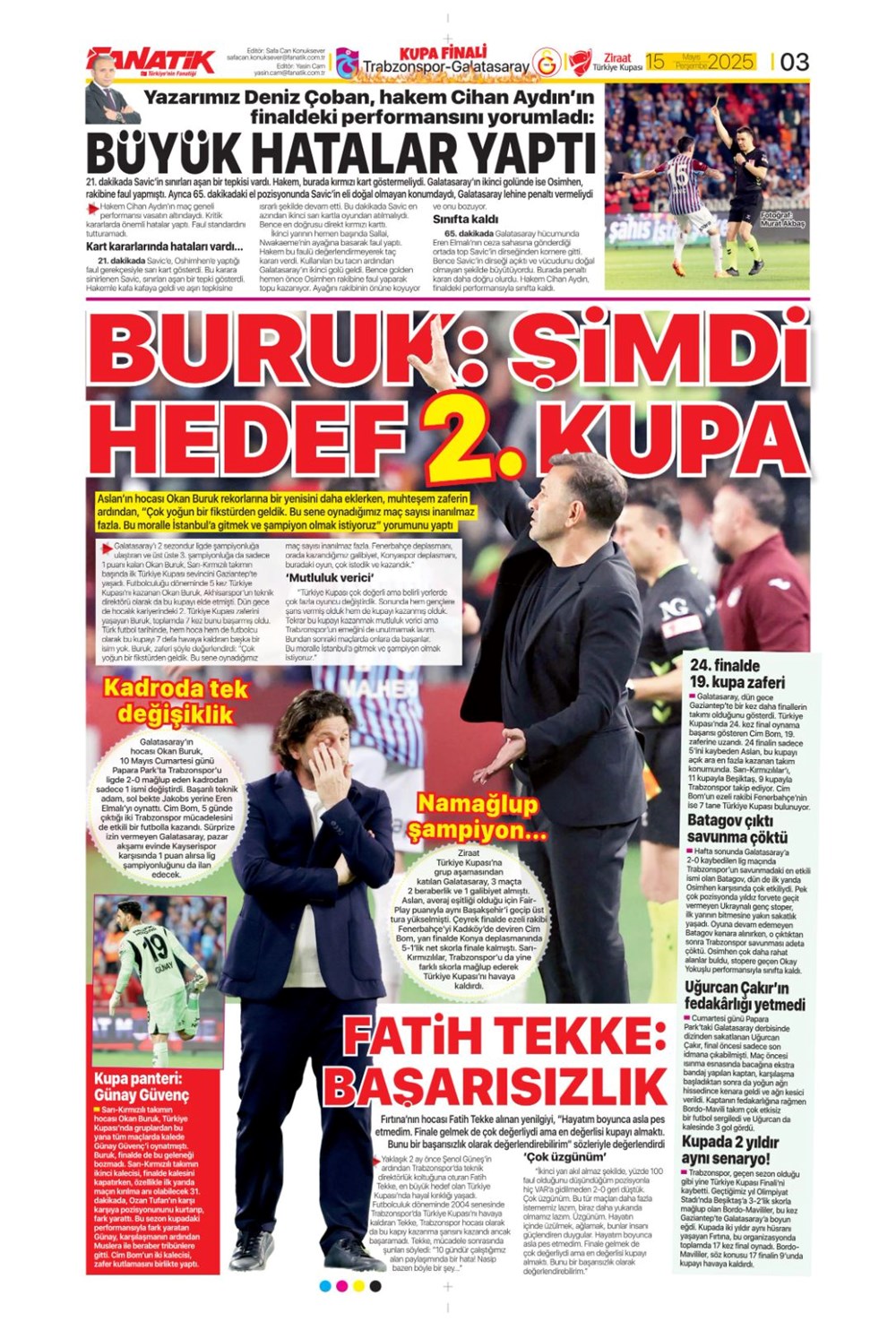 SPOR“Kupa canavarı Galatasaray” (15 Mayıs 2025 spor manşetleri) Son güncelleme: Mayıs 15, 2025 5:59 am Yayımlandı: Mayıs 15, 2025 Paylaş 0 Dakika Okuma Paylaş Gaziantep FK’nin Galibiyet Serisi Duvara Çarptı! 20. Dünya Atletizm Şampiyonası başladı Jose Mourinho savları günden güne artıyor: Fenerbahçe sonrası çalıştıracağı grubu duyurdu Bodrum FK, Galatasaray karşısında birinci peşinde Brezilya’dan Ayrılık Kararı ve Fenerbahçe’yi Hatırlatan Jorge Jesus Rüzgarı Bu Makaleyi Paylaş Facebook Bağlantıyı Kopyala Yazdır Paylaş Önceki Makale Samsunspor, 27 yıl sonra Avrupa kupalarına katılıyor Sonraki Makale Kastamonu’da korkunç zincirleme kaza! Yorum yapılmamış Yorum yapılmamış Bir yanıt yazın Yanıtı iptal etE-posta adresiniz yayınlanmayacak. Gerekli alanlar * ile işaretlenmişlerdirYorum *Ad * E-posta * İnternet sitesi Daha sonraki yorumlarımda kullanılması için adım, e-posta adresim ve site adresim bu tarayıcıya kaydedilsin. Takip EdinXTakip EtInstagramTakip EtTelegramTakip Et - Reklam -Son Haberler Sakarya’da feci kaza: 1 meyyit, 2 yaralı GÜNDEM Aralık 6, 2025 Meskene çağırdıkları erkeği gasp eden çift tutuklandı GÜNDEM Aralık 6, 2025 Atama ve misyondan alma kararları Resmi Gazete’de GÜNDEM Aralık 6, 2025 ASELSAN GÖKSUR’u muvaffakiyetle test etti TEKNOLOJİ Aralık 6, 2025