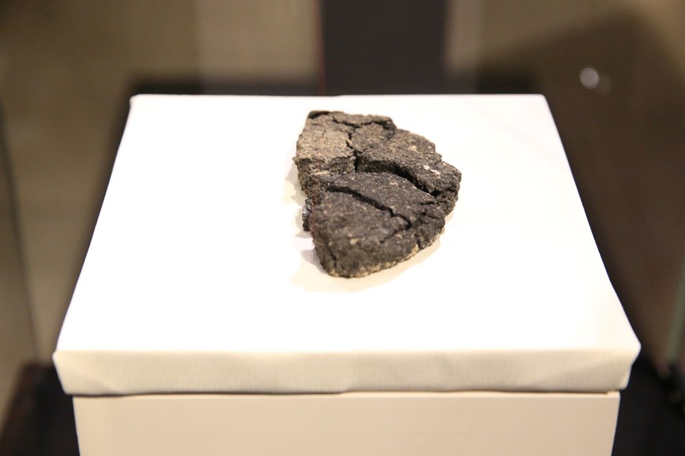 “Bu ekmek üzerinde çalışmalarımıza devam ettik. Gömülü haldeki meskenin eşik kısmına çok yakın bir yere konulmuş. 2,5 santimetre kalınlığında, 12,5 santimetre genişliği mevcut. Tüp halde bulunmuş. Formunu bildiğimiz, mayalanmış, pişirilmiş bu birinci örnek. Bunun diğer bir örneği yok. Bu ekmek fırınlandıktan, pişirildikten sonra buraya bilhassa konulmuş. Ekmeğin bilhassa art kısmındaki beyaz kalıntılara biz ‘fitolit’ diyoruz. Fitolitler, bitki kalıntıları. Aslında yaprak kalıntıları. Ekmek mayalanırken mayalanma sürecinde vakit zaman yaprak üzerine bırakılıyor. Bunlara ilişkin izler yer alıyor. Bunu da çalışacağız. Ekmeğin öbür tahlillerini de yaptık.”