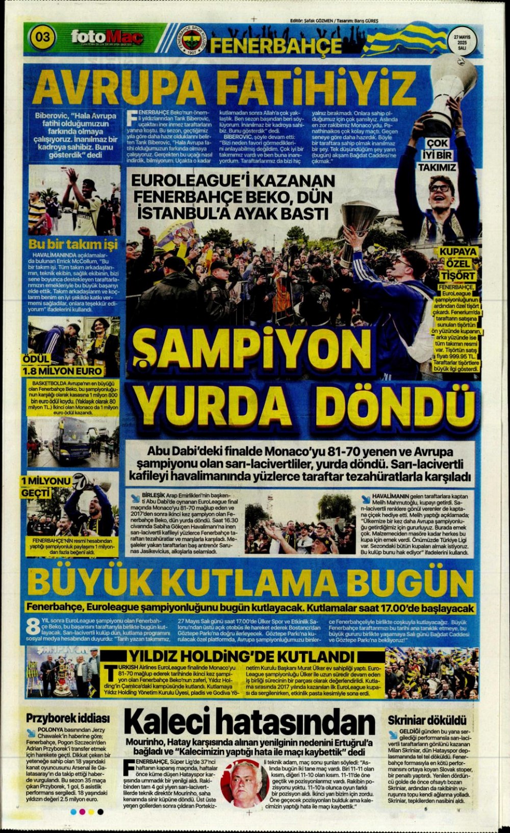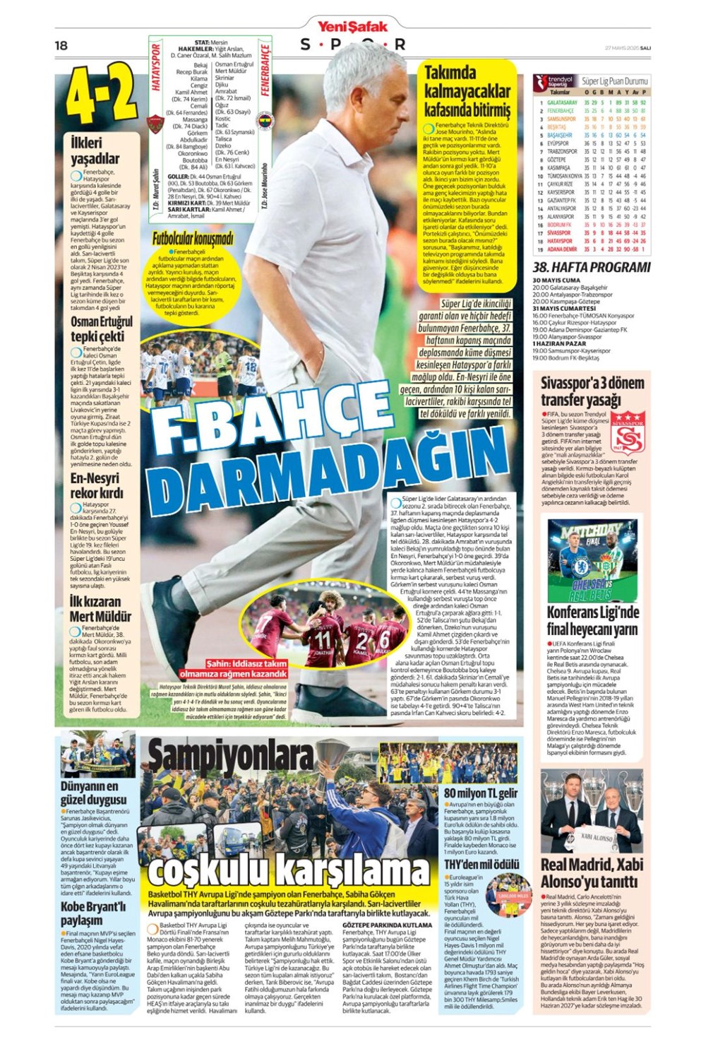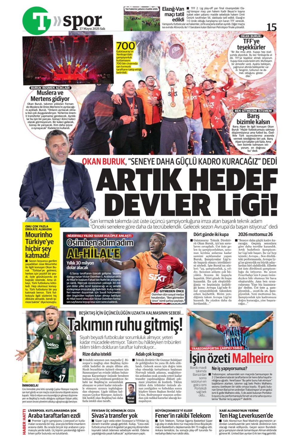 GÜNDEM“Fenerbahçe darmadağın” (27 Mayıs 2025 spor manşetleri) Son güncelleme: Mayıs 27, 2025 6:19 am Yayımlandı: Mayıs 27, 2025 Paylaş 0 Dakika Okuma Paylaş 60. Cumhurbaşkanlığı Türkiye Bisiklet Turu 3. Etabı: Rota, Etaplar, Takımlar ve detaylar… Genç bayanı 17 kere bıçakladı: İstanbul’da komşudan vahşet Alemdağ Spor Kulübü Başkanı silahlı saldırıda can verdi Türk savaş gemileri 20 Temmuz’da KKTC’ye demir atacak İBB’ye büyük operasyon: Belediye bürokratlarına darbe! 25 şüpheli cezaevine gönderildi Bu Makaleyi Paylaş Facebook Bağlantıyı Kopyala Yazdır Paylaş Önceki Makale Cinsiyete göre vücutta yayılan kanser: Melanom Sonraki Makale Tabiatın protein deposu, toplamak için 15 kilometre yol gidiyorlar: “7 kaygıya evelik” Yorum yapılmamış Yorum yapılmamış Bir yanıt yazın Yanıtı iptal etE-posta adresiniz yayınlanmayacak. Gerekli alanlar * ile işaretlenmişlerdirYorum *Ad * E-posta * İnternet sitesi Daha sonraki yorumlarımda kullanılması için adım, e-posta adresim ve site adresim bu tarayıcıya kaydedilsin. Takip EdinXTakip EtInstagramTakip EtTelegramTakip Et - Reklam -Son Haberler “İmamoğlu çıkar hedefli kabahat örgütü” soruşturmasında tahliye kararı verilen 10 zanlı için tutuklama talebi GÜNDEM Aralık 5, 2025 Cumhurbaşkanı Erdoğan: Adil toplumsal hayat, bayanların kelam sahibi olmalarıyla mümkün GÜNDEM Aralık 5, 2025 3 yaşında satrançta dünya rekoru kırdı GÜNDEM Aralık 5, 2025 Emine Erdoğan’dan Dünya Bayan Hakları Günü paylaşımı GÜNDEM Aralık 5, 2025