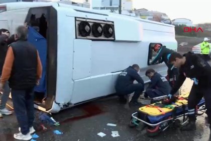 Maltepe’de servis minibüsü devrildi, yaralılar var