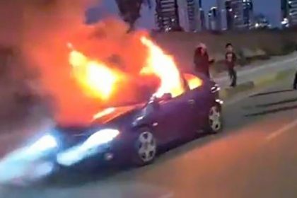 Adana'da seyir halindeki bir arabanın alev alev yandığı anlar cep telefonu kamerasıyla…