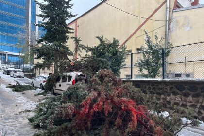 Kökünden sökülen ağaç park halindeki aracın üzerine devrildi
