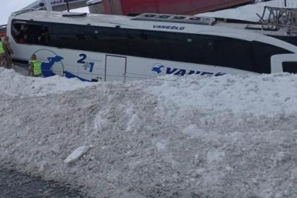 Van'ın Muradiye ilçesinde yolcu otobüsü, kar küreme aracına çarptıktan sonra yoldan çıktı.…