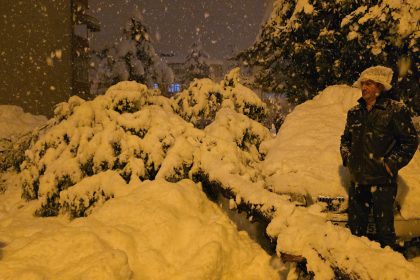 Ağır kar yağışının tesirli olduğu Karabük'te çam ağacı park halindeki araçların üzerine…