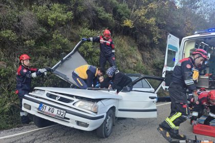 Seyir halindeki arabanın üzerine kaya düştü. 5 yaralı