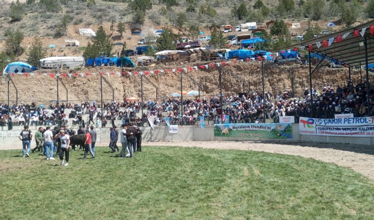 Artvin'de düzenlenen klâsik boğa güreşlerinde 500 kilogramlık bir boğa, bakıcısı Akif Uğur’a…