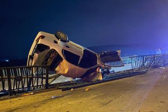 Afyonkarahisar'da köprünün bariyer demirlerine çarpan araba devrildi. Kazada 1 kişi hayatını kaybetti.