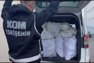 Eskişehir girişinde cazip üstündeki arızalı görünümü verilen araçta arama yapan polis grupları,…