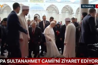 Papa, Sultanahmet Camii’nde. Ayakkabı ayrıntısı dikkat çekti