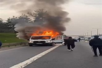 TEM Otoyolu’nda kamyonet alev alev yandı