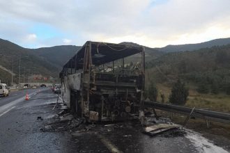 Öğrencileri taşıyan otobüs küle döndü