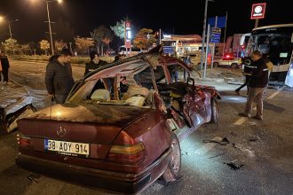 Çeşit otobüsü ile çarpışan arabada 2 kişi öldü