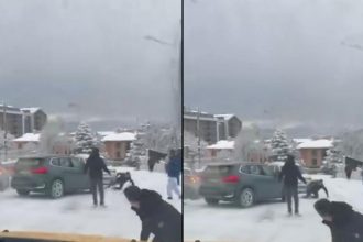Bursa'daki ağır kar yağışı sırasında denetimden çıkan bir araba, yolda bulunanlara kaygı…