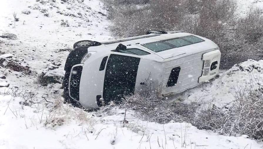 Şoförünün ismi ve numarası henüz bilinmeyen, bir firmaya ait servis aracı, kar yağışının etkin bulunduğu Bingöl-Diyarbakır yolu üzerindeki Şehitköy alanında yol kenarına devrildi.