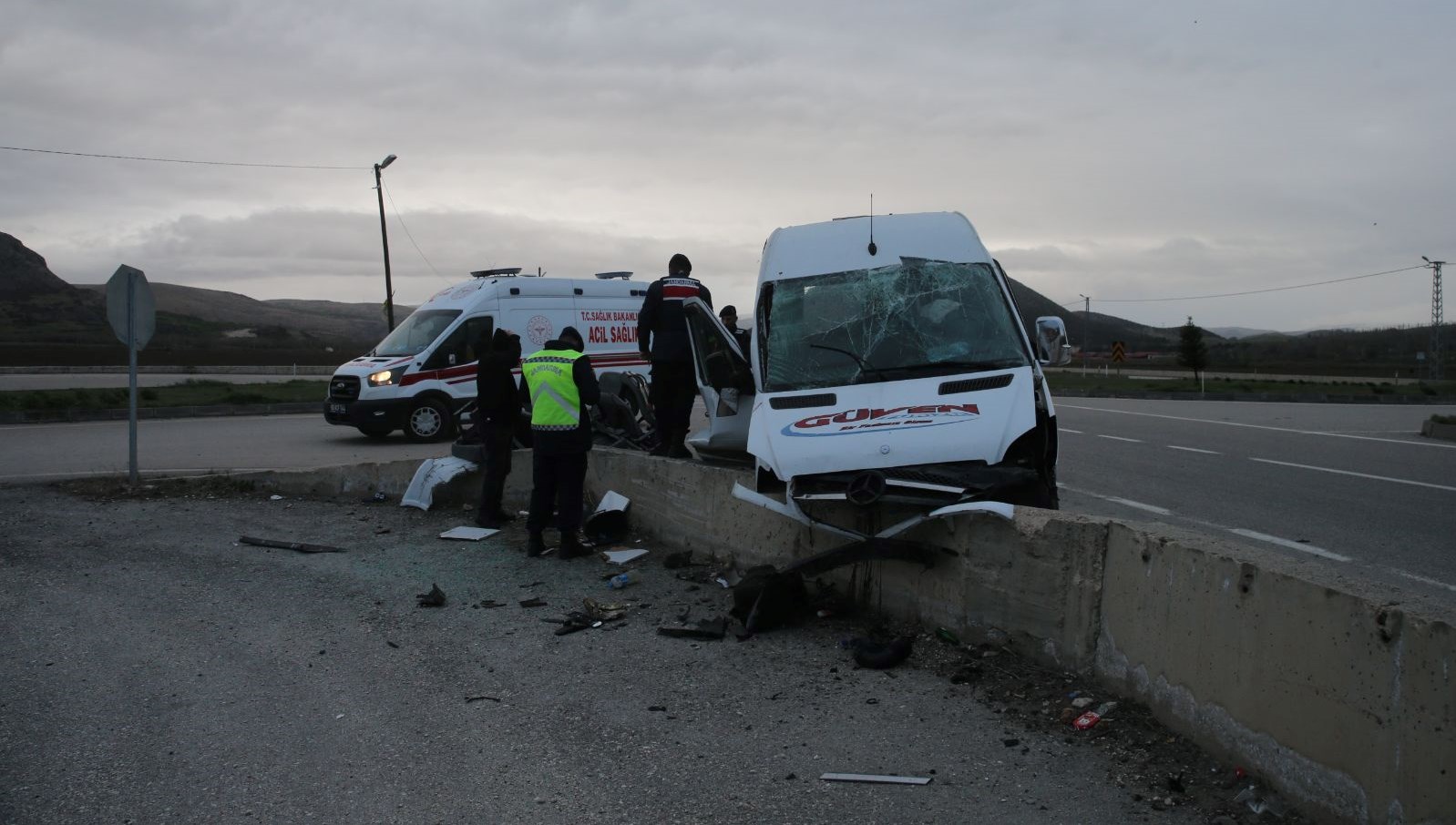 Adıgüzel Sarı’nın idaresindeki personel taşıyan otobüs, Tokat Turhal yolu üzerindeki Çaylı dönemeç noktasında kontrolden çıkarak destek duvarına çarptı.