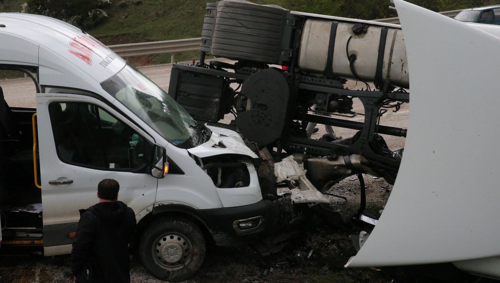 Tokat’tan Artova ilçesine yolcuları taşıyan M.Y.’nin kullandığı 60 M 2306 plakalı dolmuş, Kızıliniş bölgesinde C.A. (46) yönetimindeki 34 DFV 319 plakalı TIR ile çarpıştı.