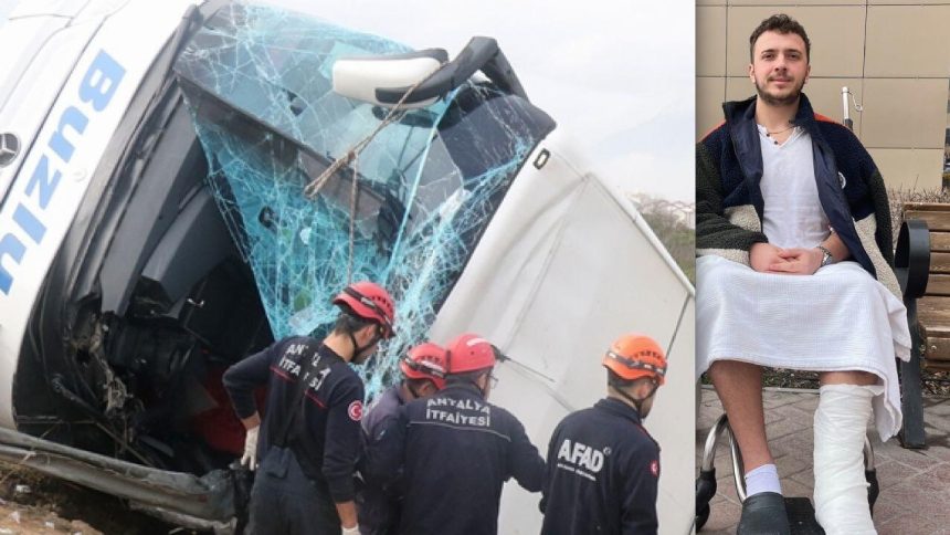 Antalya’nın Döşemealtı ilçesinde meydana gelen ve şoför dâhil 10 kişinin hayatını kaybettiği kazayı sol ayak bileğindeki çatlaklar atlatan Eskişehirli Yağız Oğuz, o anları anlattı. Otobüste en arka koltukta oturduğunu ifade eden Alanya Alaaddin Keykubat Üniversitesi öğrencisi Oğuz, kaza esnasında uyuduğunu ve neler olduğunu daha sonra başkalarından öğrendiğini ifade etti. Yağız Oğuz, kaza yapan şoför hakkında ise mesleğin başladığını öğrendiğini belirtti.