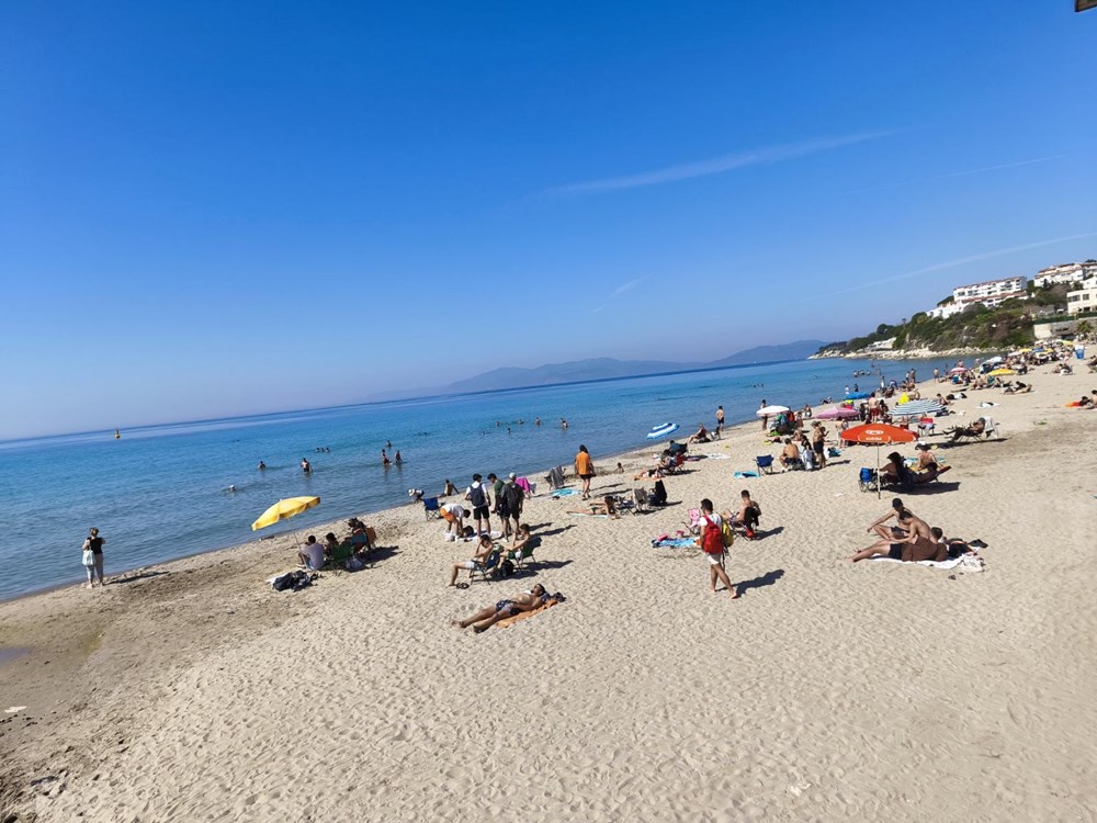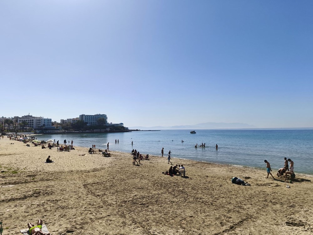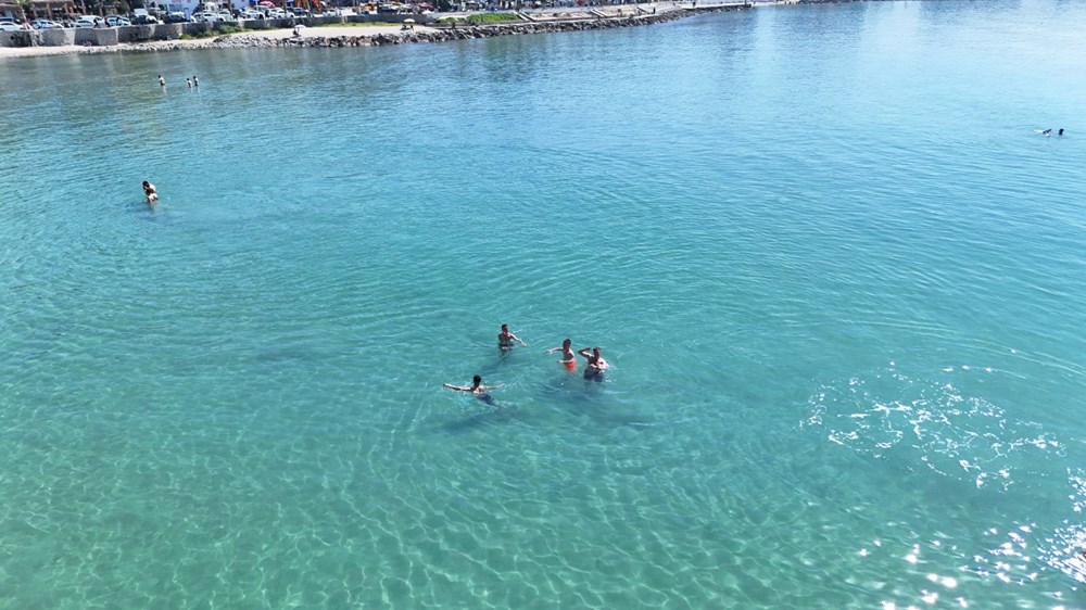 Adeta yaz mevsimini andıran bu havada, Ege Denizi’nin serin sularına girenler bolca yüzerek keyifli anlar yaşadı. Plajın ve kıyı şeridinin kalabalık olması, ilçe esnafını da sevindirdi.