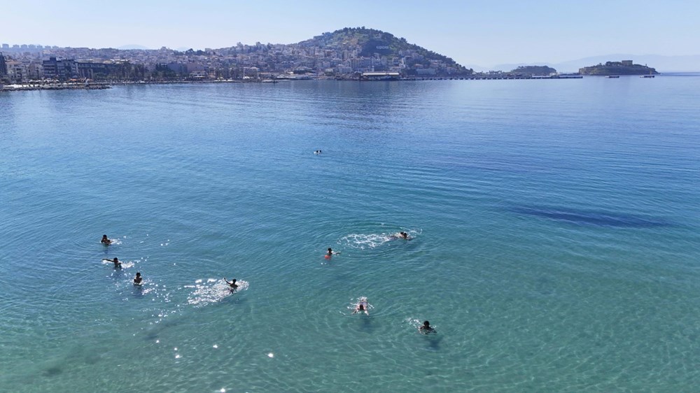 Kuşadası’nda hava ısısının 29 dereceye ulaşması ve deniz suyu ısısının 20 derece olarak ölçülmesiyle birlikte, nem oranı da yüzde 30 olarak kaydedildi.