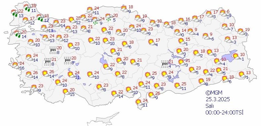 Bayramın son günü hava sıcaklıkları artmaya devam edecek. Ülke genelinde sıcaklıklar mevsim normallerinin üstünde kalacak. Kimi bölgelerde orta ara yağışların etkili olması beklenirken, ülke genelinde güneşli bir hava görülecek.