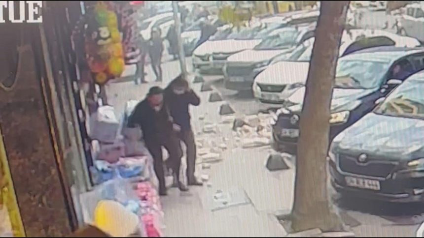 5 katlı binanın en üst katındaki balkonun modüllerinin düştüğü anlar etraftaki bir iş yerinin güvenlik kamerasıyla kaydedildi. Manzaralarda, dairenin balkonundan kopan kesimlerin yolda yürüyen yayaların gerisine ve park halindeki araçların üzerine düştüğü anlar yer aldı.