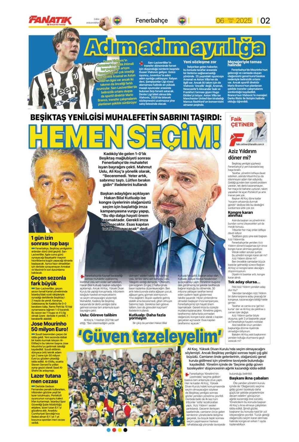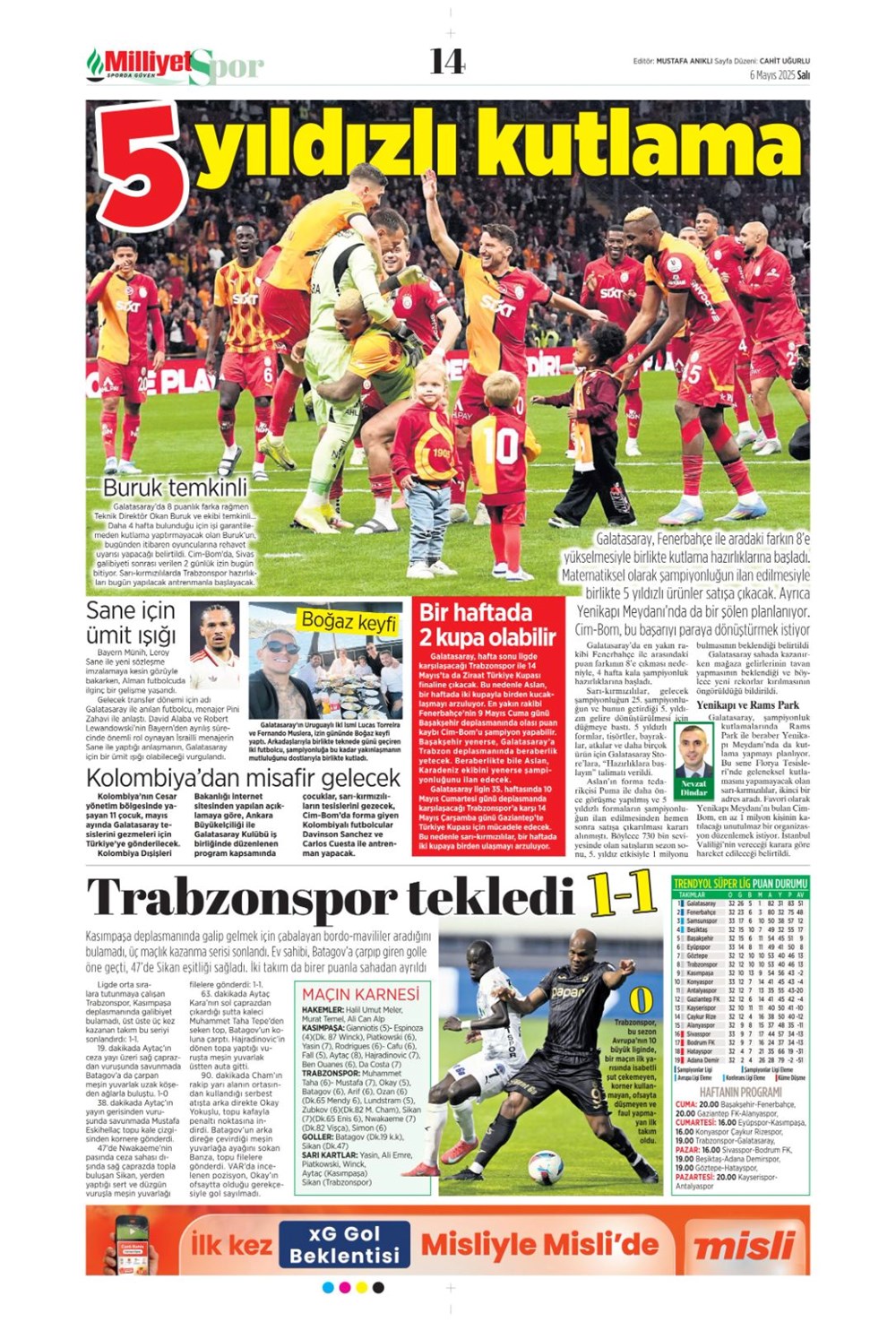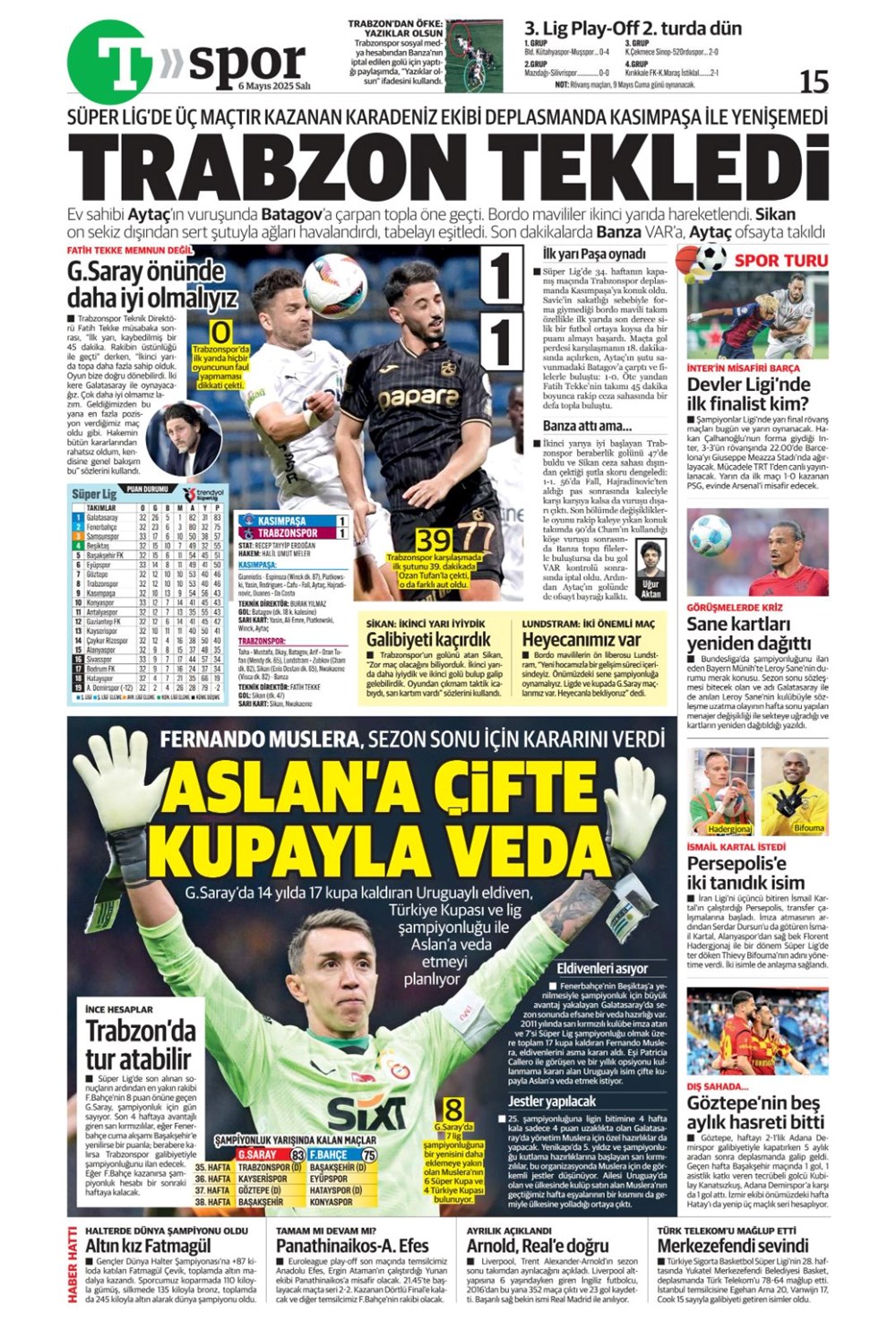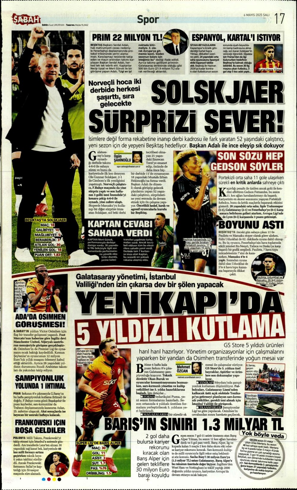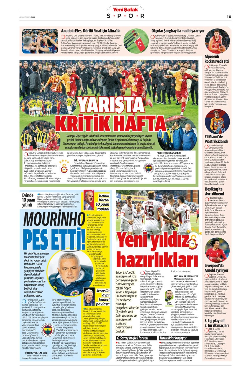 SPOR“Aslan’dan üçlü harekat” (6 Mayıs 2025 spor manşetleri) Son güncelleme: Mayıs 6, 2025 6:19 am Yayımlandı: Mayıs 6, 2025 Paylaş 0 Dakika Okuma Paylaş Suriye’den Flaş İddia: PKK/YPG, Halep’i Terk Edip Suriye İçişleri’ne mi Katılıyor? Final Bileti İçin Nefesler Tutuldu: Galatasaray-ÇBK Mersin Derbisi Başlıyor! Fenerbahçe’den sponsorluk argümanlarına cevap MotoGP San Marino’da kazanan Marc Marquez Türkiye, UEFA’da 12 şahısla temsil hakkı kazandı Bu Makaleyi Paylaş Facebook Bağlantıyı Kopyala Yazdır Paylaş Önceki Makale Edirne’de Kakava ateşi yakıldı Sonraki Makale Çanakkale’de traktör faciası! 80 yaşındaki çiftçi hayatını kaybetti Yorum yapılmamış Yorum yapılmamış Bir yanıt yazın Yanıtı iptal etE-posta adresiniz yayınlanmayacak. Gerekli alanlar * ile işaretlenmişlerdirYorum *Ad * E-posta * İnternet sitesi Daha sonraki yorumlarımda kullanılması için adım, e-posta adresim ve site adresim bu tarayıcıya kaydedilsin. Takip EdinXTakip EtInstagramTakip EtTelegramTakip Et - Reklam -Son Haberler Ankara’da kan donduran olay. Annesini, kızını ve eşini öldürüp intihar etti GÜNDEM Şubat 10, 2026 Dereye uçan arabadaki 2 kız kardeş hayatını kaybetti. Kaçan şoför yakalandı GÜNDEM Şubat 9, 2026 Rap dünyasında “Malatyalıyım” çıkışı: Uzi’den “Şeytan” iddialarına sert tepki! MAGAZİN Şubat 9, 2026 Gülşen’den Şaşırtan “Soyadı” Hamlesi: Tam 10 Yıl Sonra Bir İlk! MAGAZİN Şubat 9, 2026