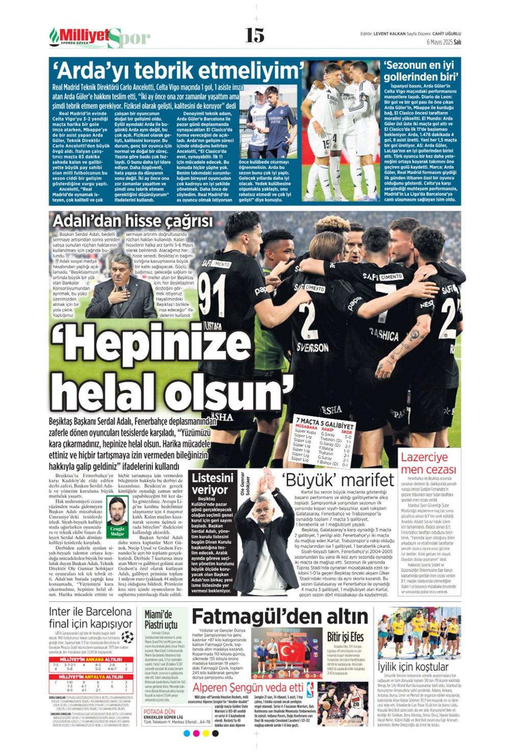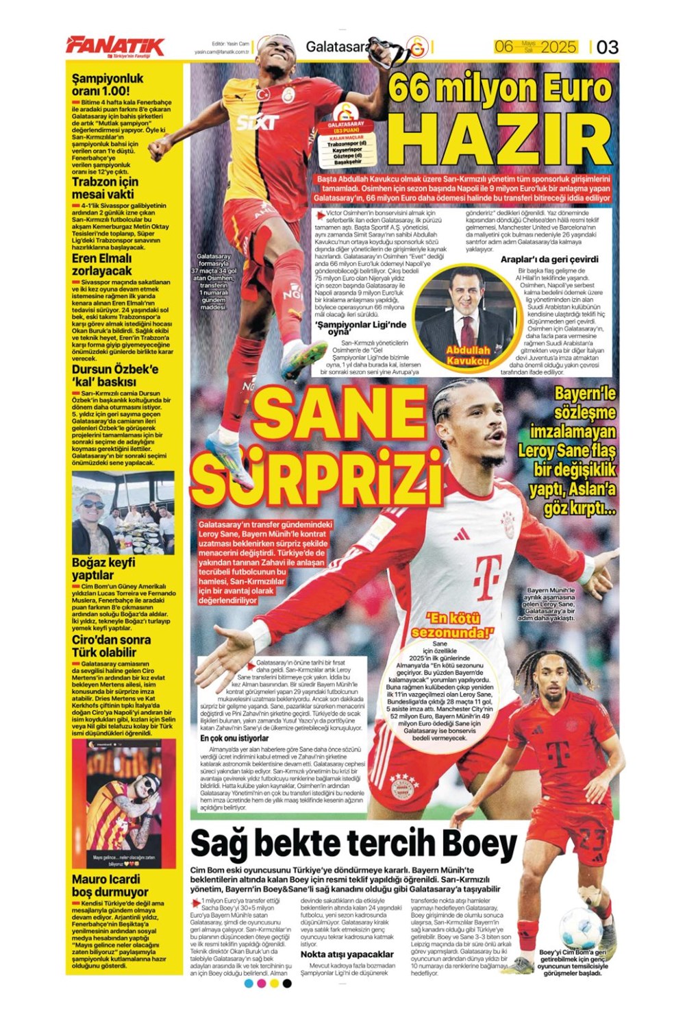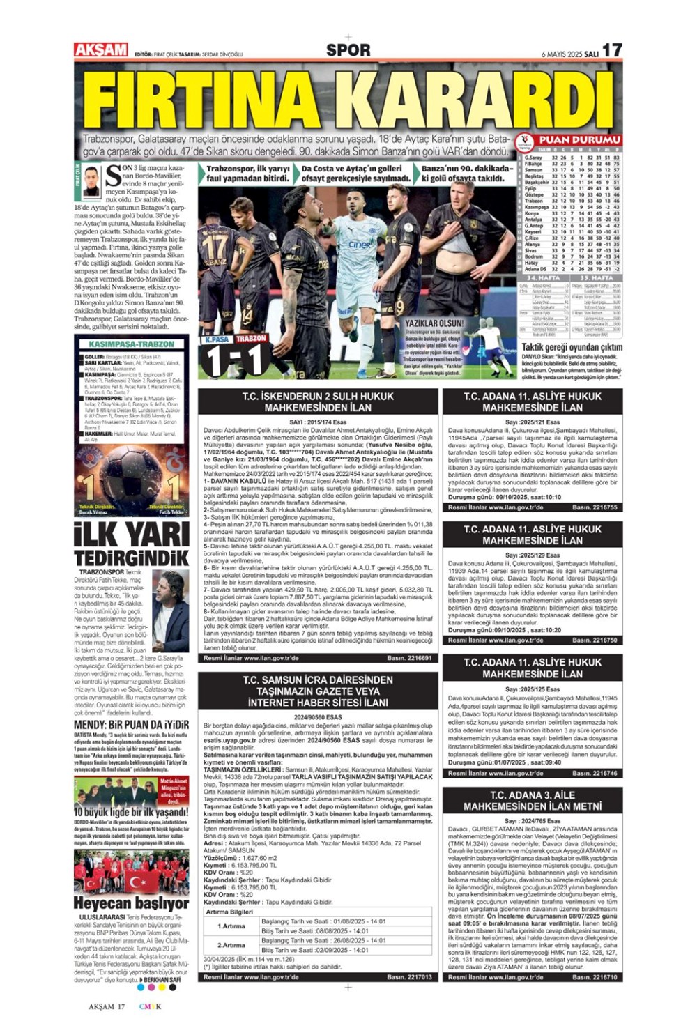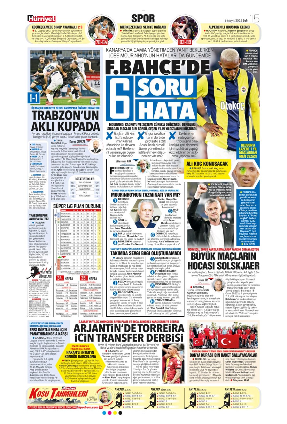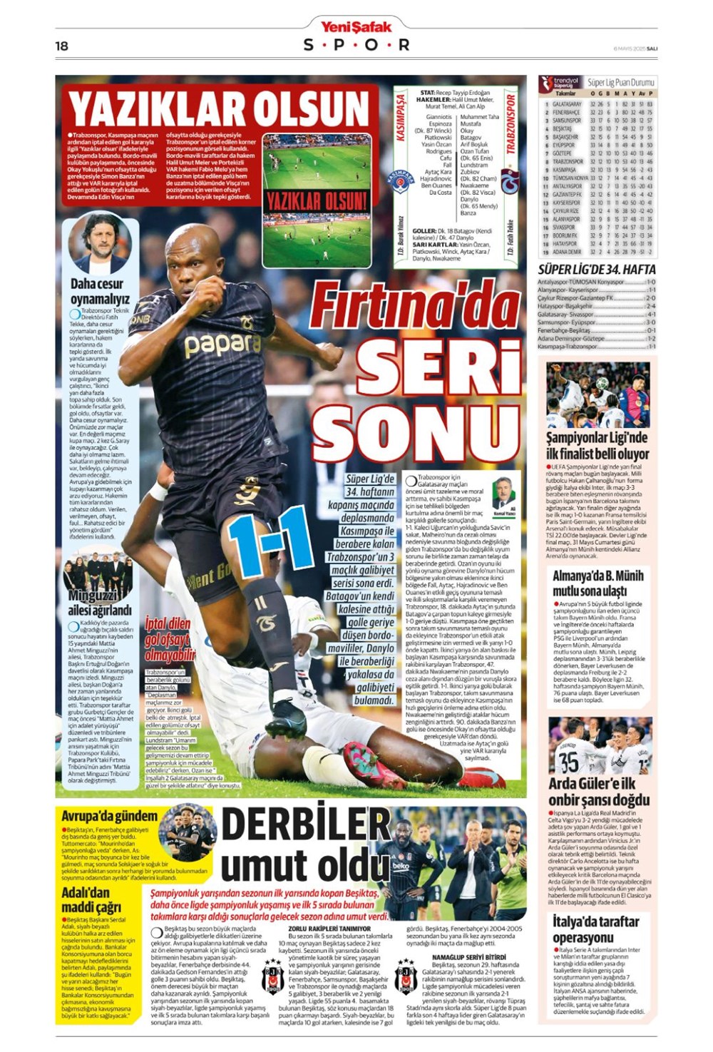 SPOR“Aslan’dan üçlü harekat” (6 Mayıs 2025 spor manşetleri) Son güncelleme: Mayıs 6, 2025 6:19 am Yayımlandı: Mayıs 6, 2025 Paylaş 0 Dakika Okuma Paylaş Suriye’den Flaş İddia: PKK/YPG, Halep’i Terk Edip Suriye İçişleri’ne mi Katılıyor? Final Bileti İçin Nefesler Tutuldu: Galatasaray-ÇBK Mersin Derbisi Başlıyor! Fenerbahçe’den sponsorluk argümanlarına cevap MotoGP San Marino’da kazanan Marc Marquez Türkiye, UEFA’da 12 şahısla temsil hakkı kazandı Bu Makaleyi Paylaş Facebook Bağlantıyı Kopyala Yazdır Paylaş Önceki Makale Edirne’de Kakava ateşi yakıldı Sonraki Makale Çanakkale’de traktör faciası! 80 yaşındaki çiftçi hayatını kaybetti Yorum yapılmamış Yorum yapılmamış Bir yanıt yazın Yanıtı iptal etE-posta adresiniz yayınlanmayacak. Gerekli alanlar * ile işaretlenmişlerdirYorum *Ad * E-posta * İnternet sitesi Daha sonraki yorumlarımda kullanılması için adım, e-posta adresim ve site adresim bu tarayıcıya kaydedilsin. Takip EdinXTakip EtInstagramTakip EtTelegramTakip Et - Reklam -Son Haberler Ankara’da kan donduran olay. Annesini, kızını ve eşini öldürüp intihar etti GÜNDEM Şubat 10, 2026 Dereye uçan arabadaki 2 kız kardeş hayatını kaybetti. Kaçan şoför yakalandı GÜNDEM Şubat 9, 2026 Rap dünyasında “Malatyalıyım” çıkışı: Uzi’den “Şeytan” iddialarına sert tepki! MAGAZİN Şubat 9, 2026 Gülşen’den Şaşırtan “Soyadı” Hamlesi: Tam 10 Yıl Sonra Bir İlk! MAGAZİN Şubat 9, 2026