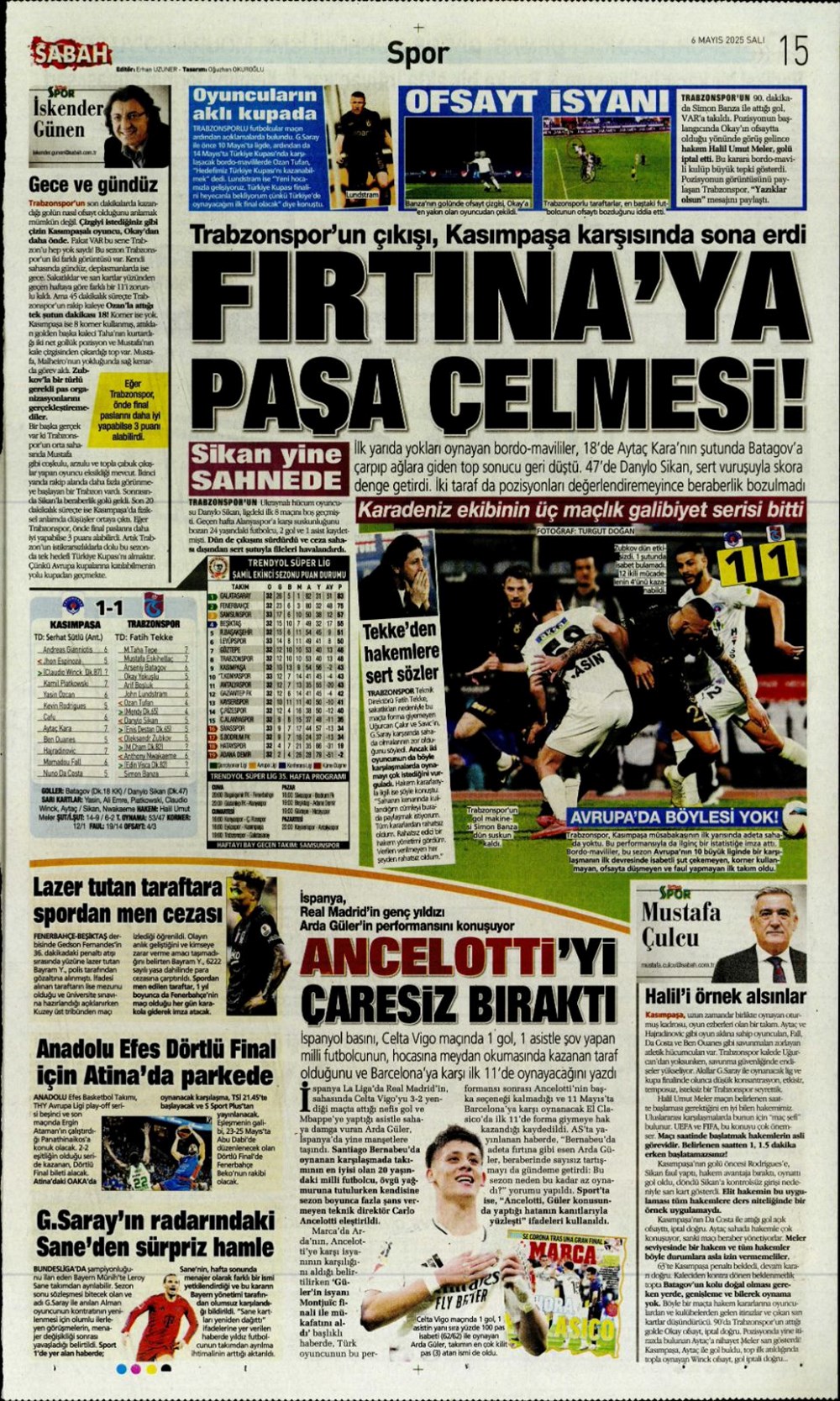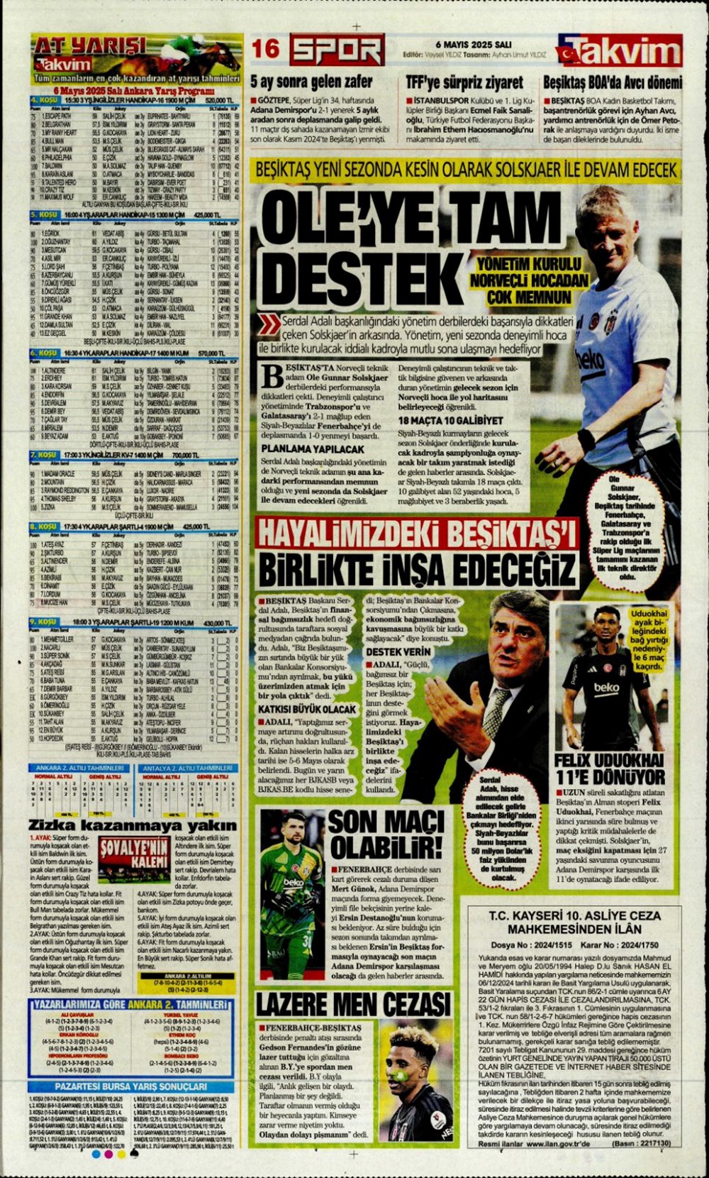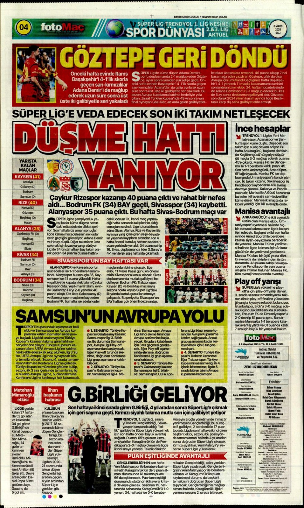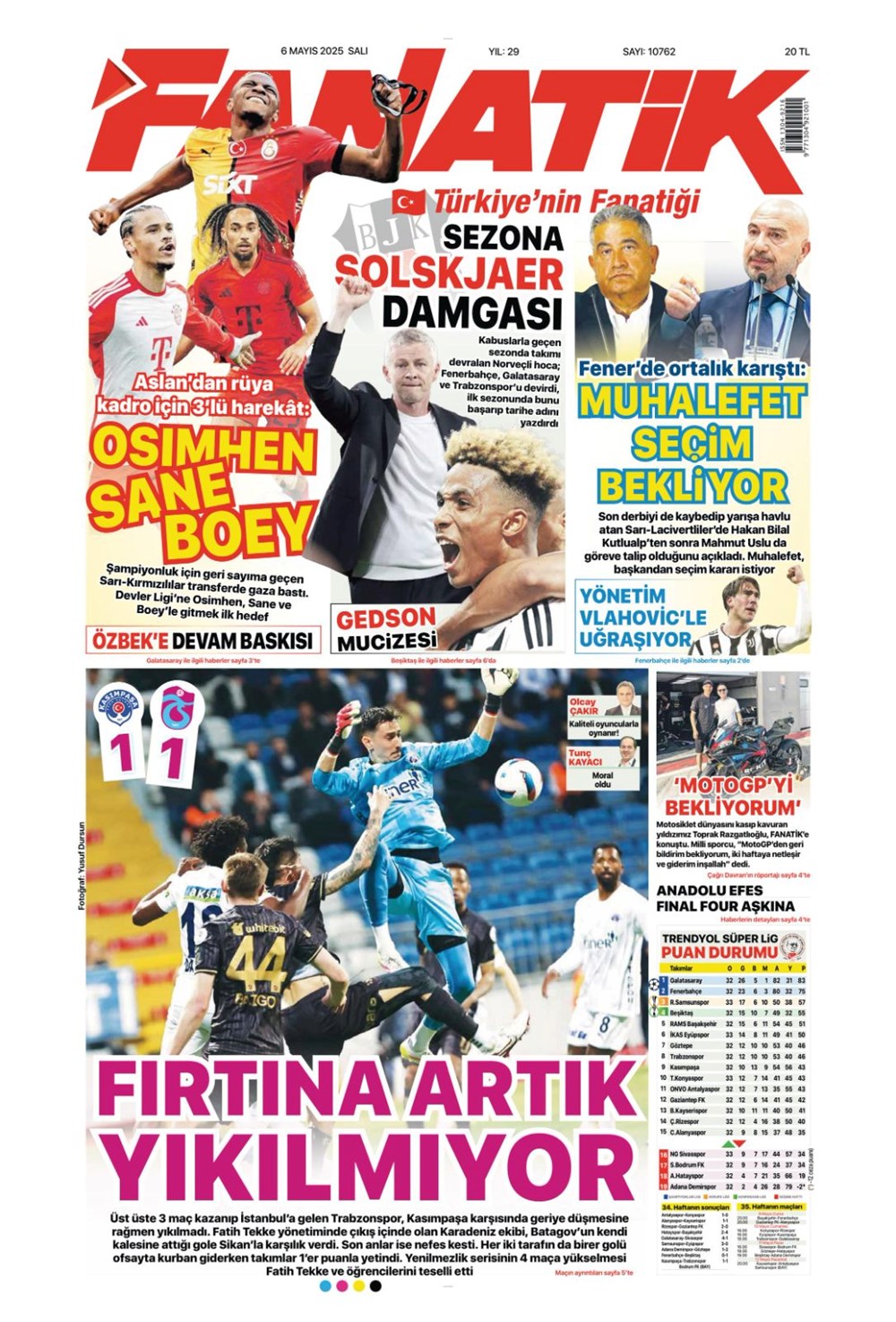 SPOR“Aslan’dan üçlü harekat” (6 Mayıs 2025 spor manşetleri) Son güncelleme: Mayıs 6, 2025 6:19 am Yayımlandı: Mayıs 6, 2025 Paylaş 0 Dakika Okuma Paylaş Suriye’den Flaş İddia: PKK/YPG, Halep’i Terk Edip Suriye İçişleri’ne mi Katılıyor? Final Bileti İçin Nefesler Tutuldu: Galatasaray-ÇBK Mersin Derbisi Başlıyor! Fenerbahçe’den sponsorluk argümanlarına cevap MotoGP San Marino’da kazanan Marc Marquez Türkiye, UEFA’da 12 şahısla temsil hakkı kazandı Bu Makaleyi Paylaş Facebook Bağlantıyı Kopyala Yazdır Paylaş Önceki Makale Edirne’de Kakava ateşi yakıldı Sonraki Makale Çanakkale’de traktör faciası! 80 yaşındaki çiftçi hayatını kaybetti Yorum yapılmamış Yorum yapılmamış Bir yanıt yazın Yanıtı iptal etE-posta adresiniz yayınlanmayacak. Gerekli alanlar * ile işaretlenmişlerdirYorum *Ad * E-posta * İnternet sitesi Daha sonraki yorumlarımda kullanılması için adım, e-posta adresim ve site adresim bu tarayıcıya kaydedilsin. Takip EdinXTakip EtInstagramTakip EtTelegramTakip Et - Reklam -Son Haberler Ankara’da kan donduran olay. Annesini, kızını ve eşini öldürüp intihar etti GÜNDEM Şubat 10, 2026 Dereye uçan arabadaki 2 kız kardeş hayatını kaybetti. Kaçan şoför yakalandı GÜNDEM Şubat 9, 2026 Rap dünyasında “Malatyalıyım” çıkışı: Uzi’den “Şeytan” iddialarına sert tepki! MAGAZİN Şubat 9, 2026 Gülşen’den Şaşırtan “Soyadı” Hamlesi: Tam 10 Yıl Sonra Bir İlk! MAGAZİN Şubat 9, 2026