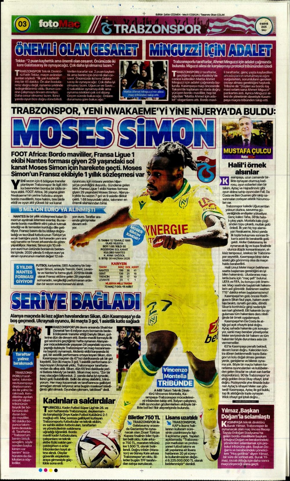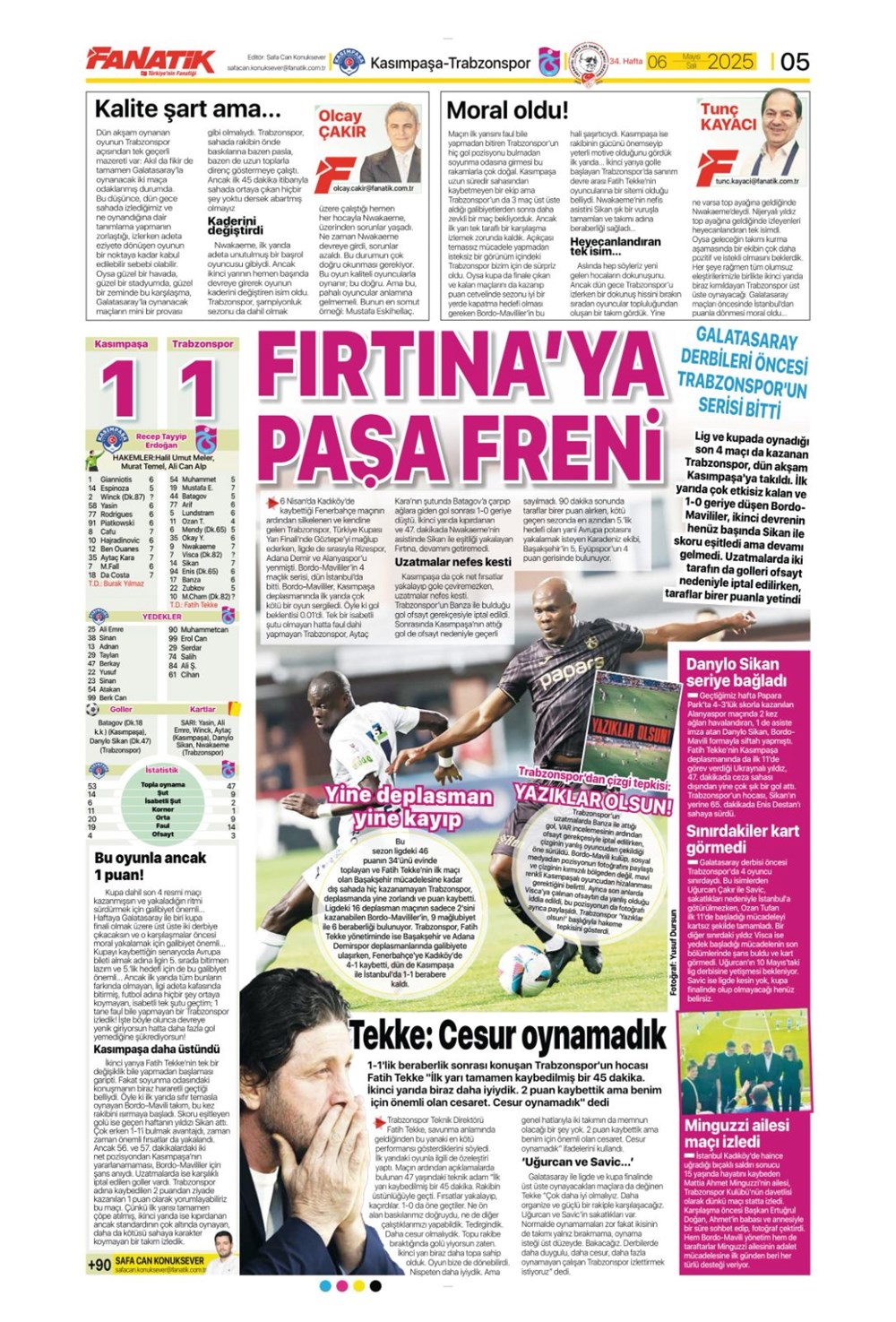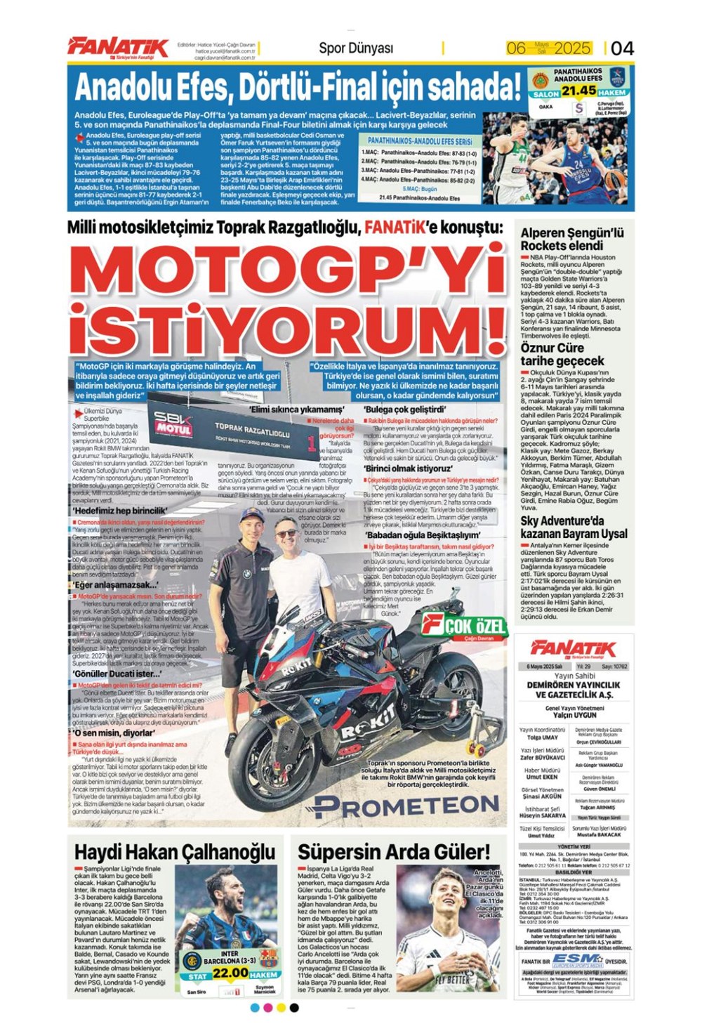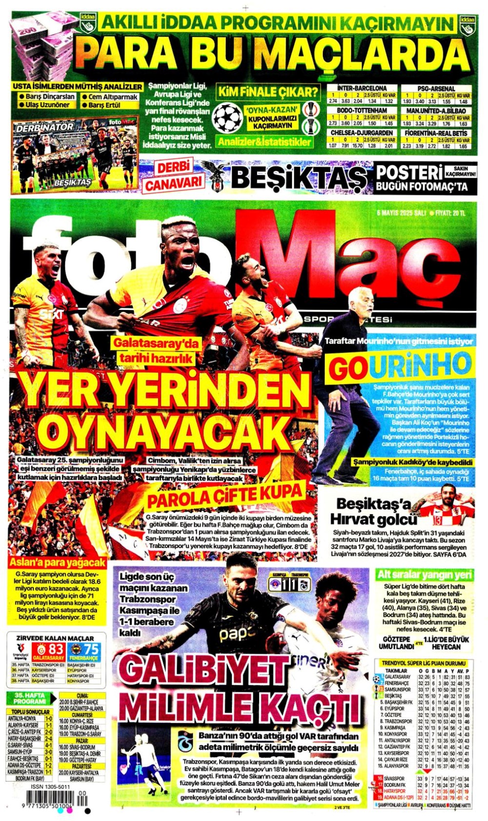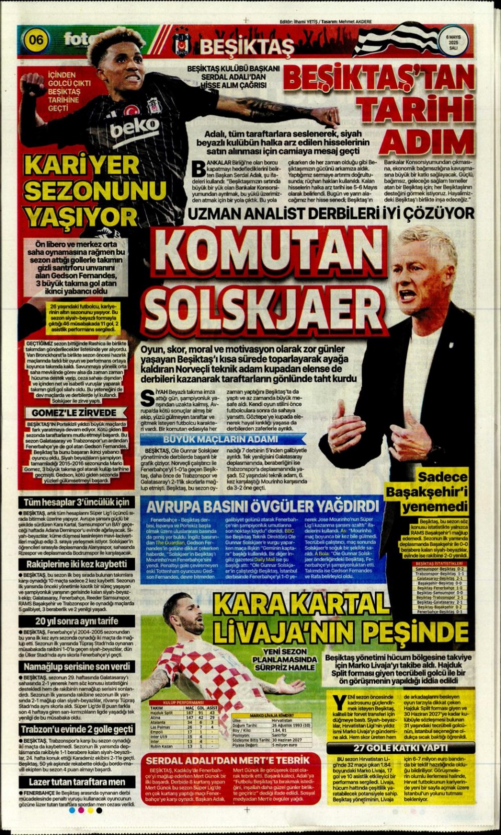 SPOR“Aslan’dan üçlü harekat” (6 Mayıs 2025 spor manşetleri) Son güncelleme: Mayıs 6, 2025 6:19 am Yayımlandı: Mayıs 6, 2025 Paylaş 0 Dakika Okuma Paylaş Suriye’den Flaş İddia: PKK/YPG, Halep’i Terk Edip Suriye İçişleri’ne mi Katılıyor? Final Bileti İçin Nefesler Tutuldu: Galatasaray-ÇBK Mersin Derbisi Başlıyor! Fenerbahçe’den sponsorluk argümanlarına cevap MotoGP San Marino’da kazanan Marc Marquez Türkiye, UEFA’da 12 şahısla temsil hakkı kazandı Bu Makaleyi Paylaş Facebook Bağlantıyı Kopyala Yazdır Paylaş Önceki Makale Edirne’de Kakava ateşi yakıldı Sonraki Makale Çanakkale’de traktör faciası! 80 yaşındaki çiftçi hayatını kaybetti Yorum yapılmamış Yorum yapılmamış Bir yanıt yazın Yanıtı iptal etE-posta adresiniz yayınlanmayacak. Gerekli alanlar * ile işaretlenmişlerdirYorum *Ad * E-posta * İnternet sitesi Daha sonraki yorumlarımda kullanılması için adım, e-posta adresim ve site adresim bu tarayıcıya kaydedilsin. Takip EdinXTakip EtInstagramTakip EtTelegramTakip Et - Reklam -Son Haberler Ankara’da kan donduran olay. Annesini, kızını ve eşini öldürüp intihar etti GÜNDEM Şubat 10, 2026 Dereye uçan arabadaki 2 kız kardeş hayatını kaybetti. Kaçan şoför yakalandı GÜNDEM Şubat 9, 2026 Rap dünyasında “Malatyalıyım” çıkışı: Uzi’den “Şeytan” iddialarına sert tepki! MAGAZİN Şubat 9, 2026 Gülşen’den Şaşırtan “Soyadı” Hamlesi: Tam 10 Yıl Sonra Bir İlk! MAGAZİN Şubat 9, 2026