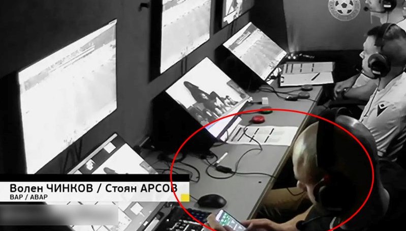 Maçın başlamasından önce VAR merkezi ekrana getirildiğinde, odadaki bir hakemin bahis sitesinde canlı bahis yapmaya hazırlandığı görüldü.
