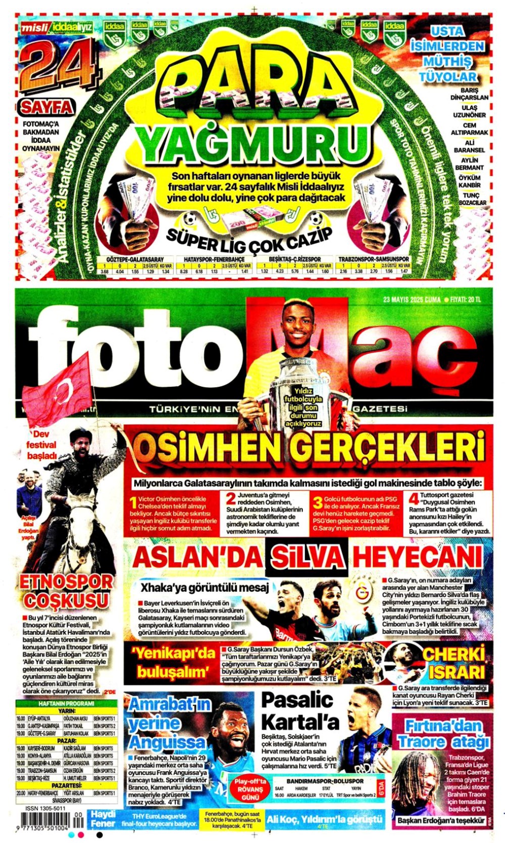 SPORGalatasaray’da Silva heyecanı (23 Mayıs 2025 spor manşetleri) Son güncelleme: Mayıs 23, 2025 6:39 am Yayımlandı: Mayıs 23, 2025 Paylaş 0 Dakika Okuma Paylaş Benfica, Kökçü ve Aktürkoğlu ile Şampiyonlar Ligi’ne Veda Etti Benfica, Orkun Kökçü yerine getirilen ismi resmen açıkladı! 1. Lig’de 13. haftanın programı belli oldu Galatasaray’da Barış Alper krizi bitti: Eyüpspor maçıyla geri döndü Jose Mourinho Okan Buruk’la Ne Konuştu? Burun Sıkma Olayının Perde Arkası Bu Makaleyi Paylaş Facebook Bağlantıyı Kopyala Yazdır Paylaş Önceki Makale HÜRKUŞ’tan tarihi başarı! Uluslararası tatbikatta 1 tonluk bomba ile tam isabet Sonraki Makale Zehirli gaz kıskacında ölüm: Gebze’de 2 defineci öldü Yorum yapılmamış Yorum yapılmamış Bir yanıt yazın Yanıtı iptal etE-posta adresiniz yayınlanmayacak. Gerekli alanlar * ile işaretlenmişlerdirYorum *Ad * E-posta * İnternet sitesi Daha sonraki yorumlarımda kullanılması için adım, e-posta adresim ve site adresim bu tarayıcıya kaydedilsin. Takip EdinXTakip EtInstagramTakip EtTelegramTakip Et - Reklam -Son Haberler Ankara’da kan donduran olay. Annesini, kızını ve eşini öldürüp intihar etti GÜNDEM Şubat 10, 2026 Dereye uçan arabadaki 2 kız kardeş hayatını kaybetti. Kaçan şoför yakalandı GÜNDEM Şubat 9, 2026 Rap dünyasında “Malatyalıyım” çıkışı: Uzi’den “Şeytan” iddialarına sert tepki! MAGAZİN Şubat 9, 2026 Gülşen’den Şaşırtan “Soyadı” Hamlesi: Tam 10 Yıl Sonra Bir İlk! MAGAZİN Şubat 9, 2026